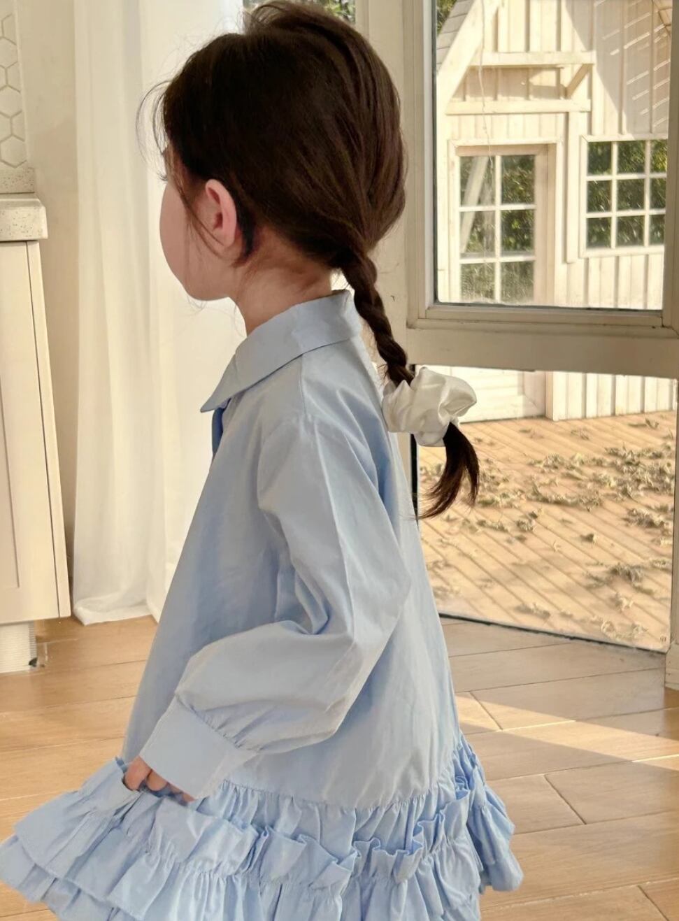 【予約】【90-140 】2color 裾フリル シャツワンピース PP