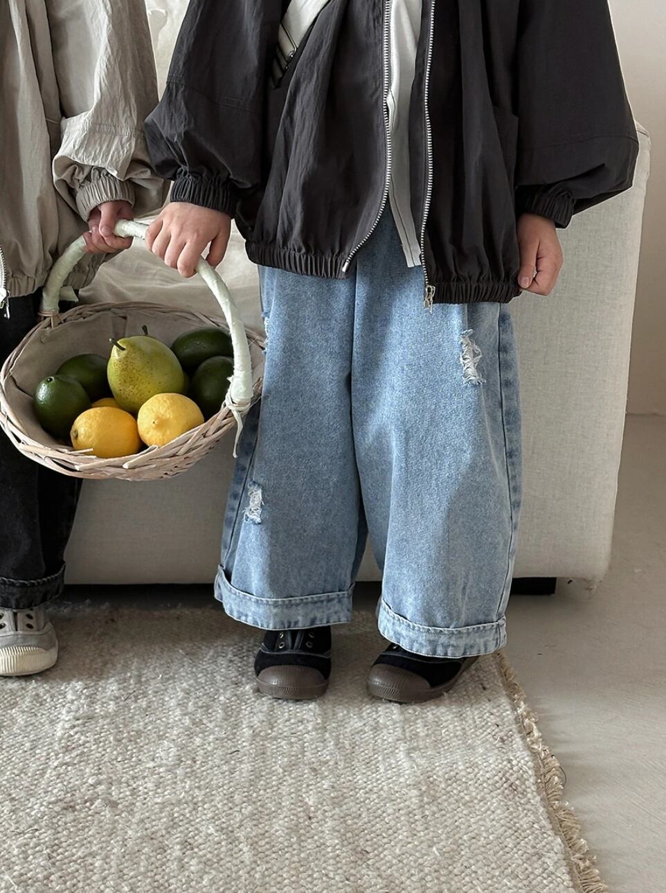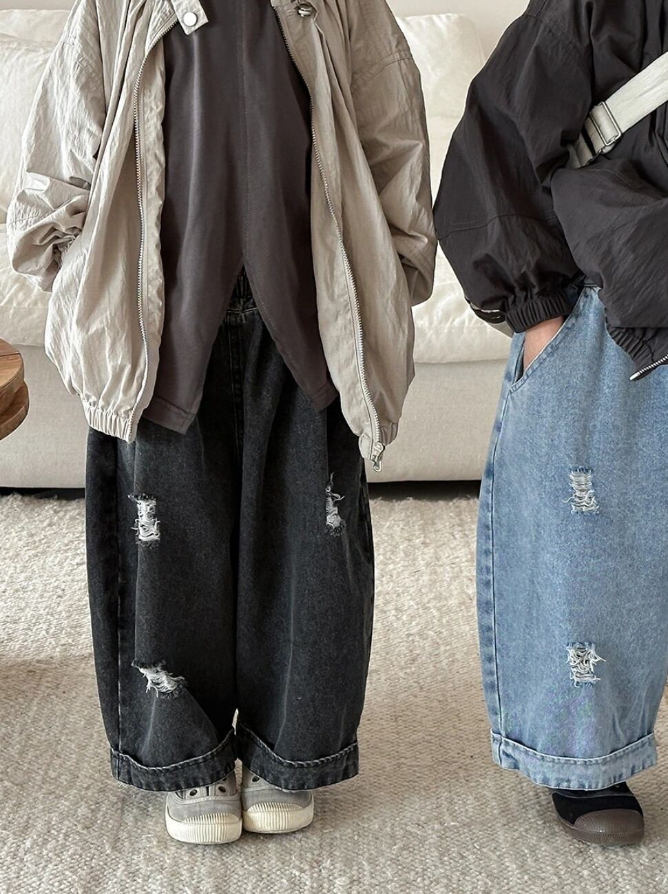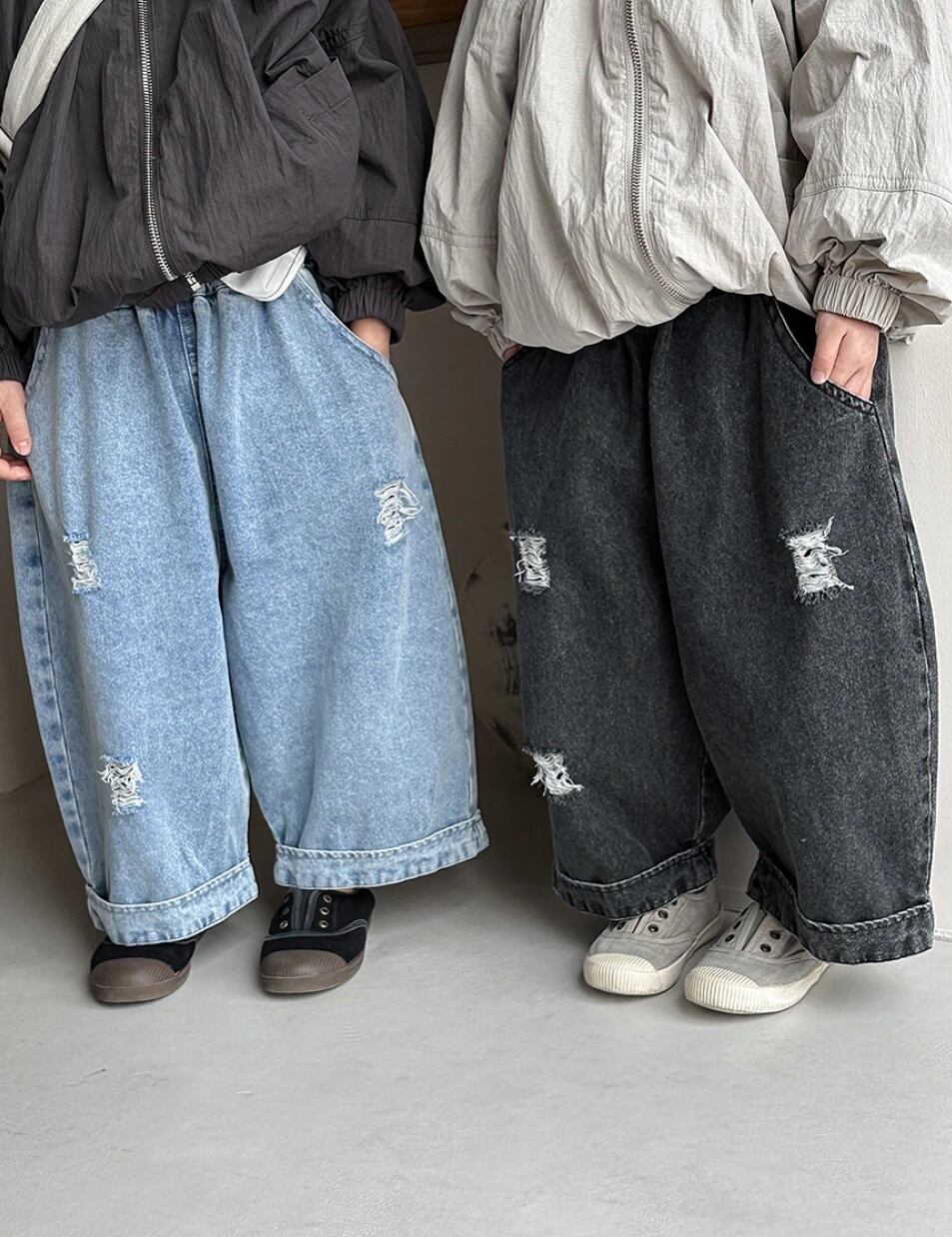 【予約】【80-140】 2color ダメージ ゆったり デニムパンツ pp
