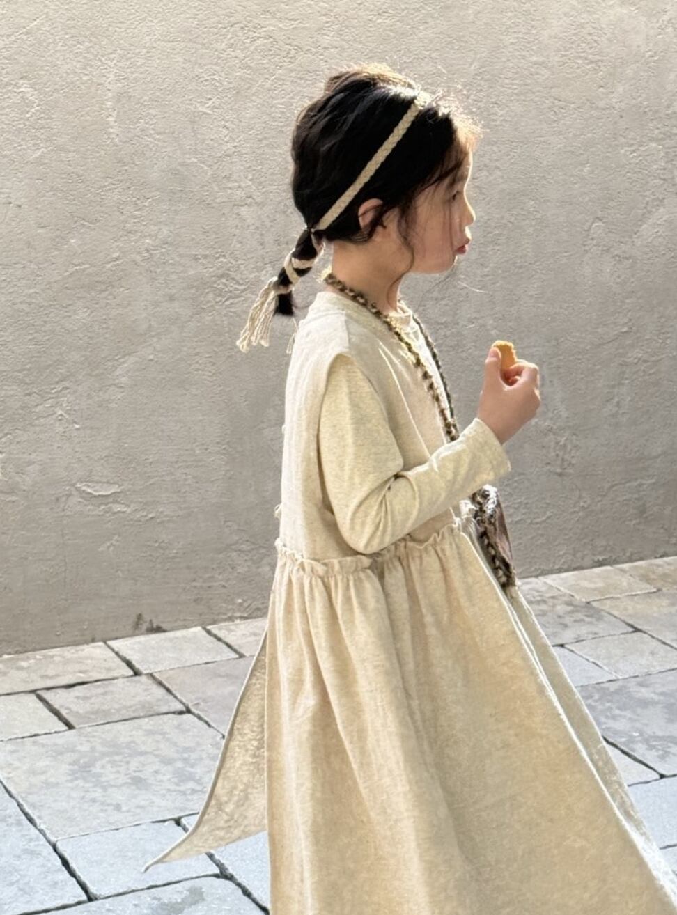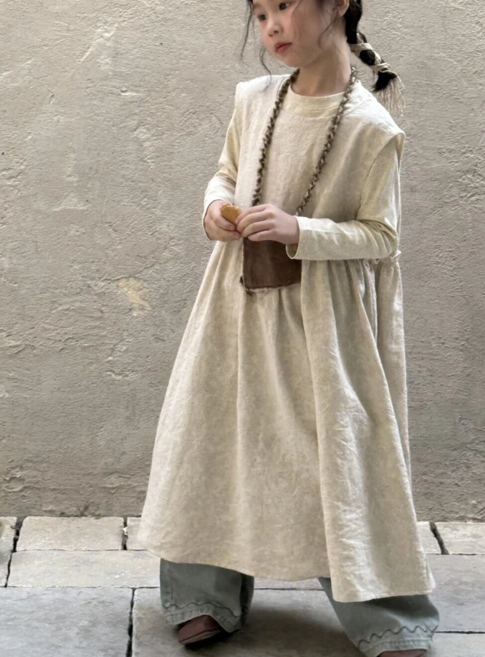 【予約】【90-150 】ナチュラルコットン リネン ロングワンピース pp