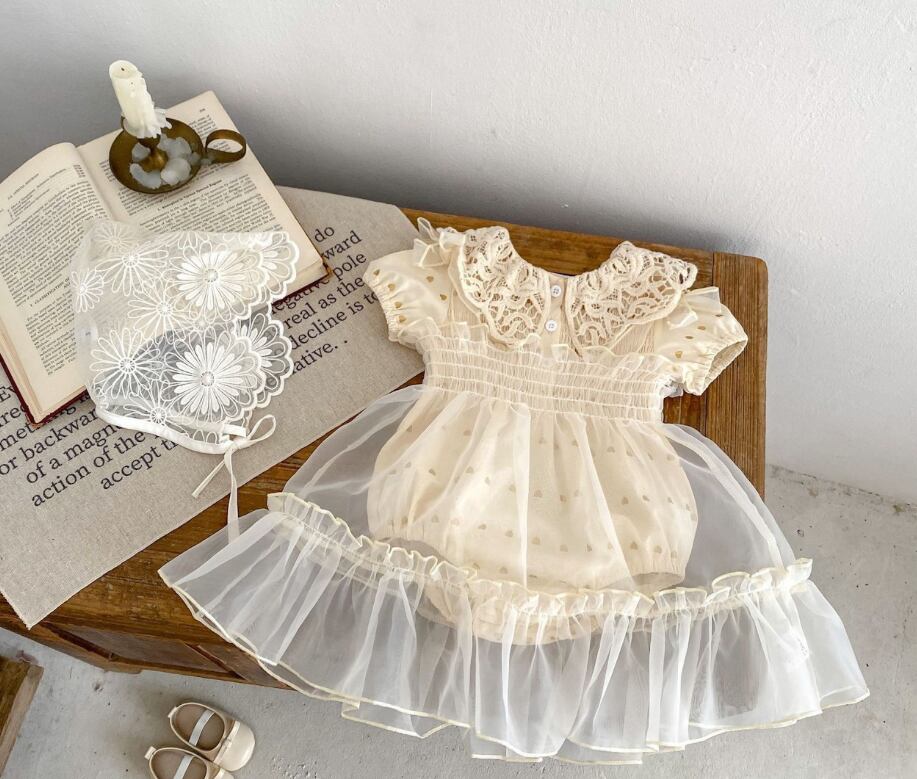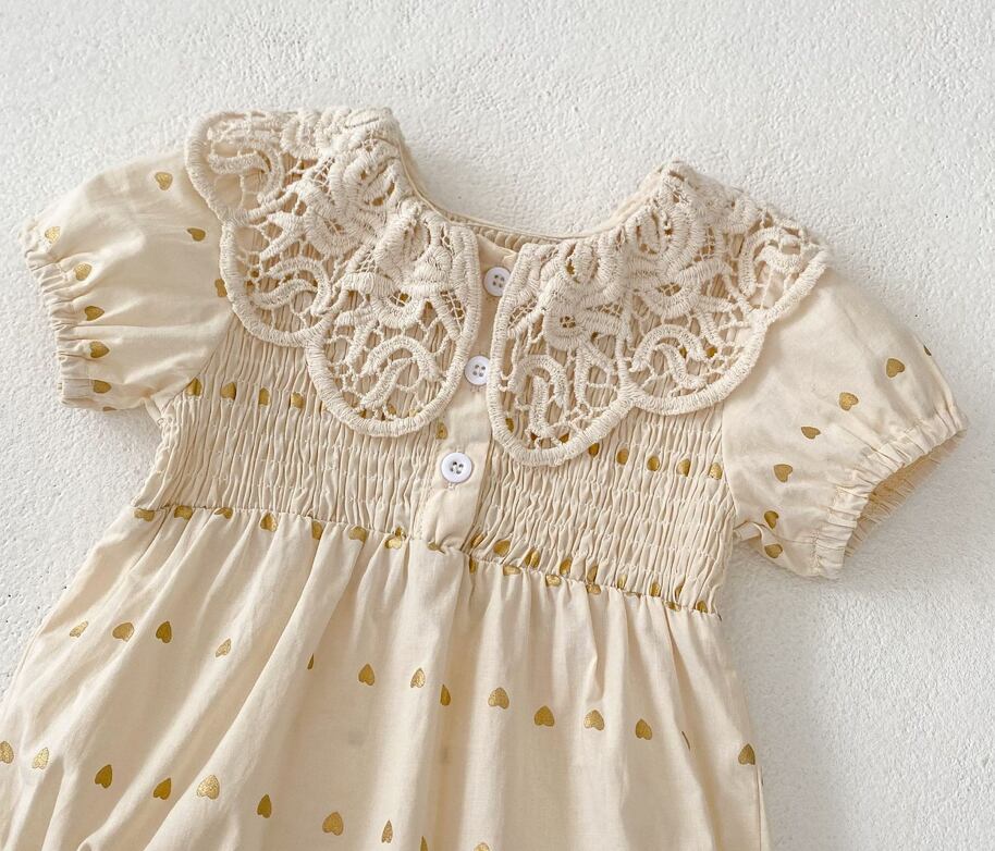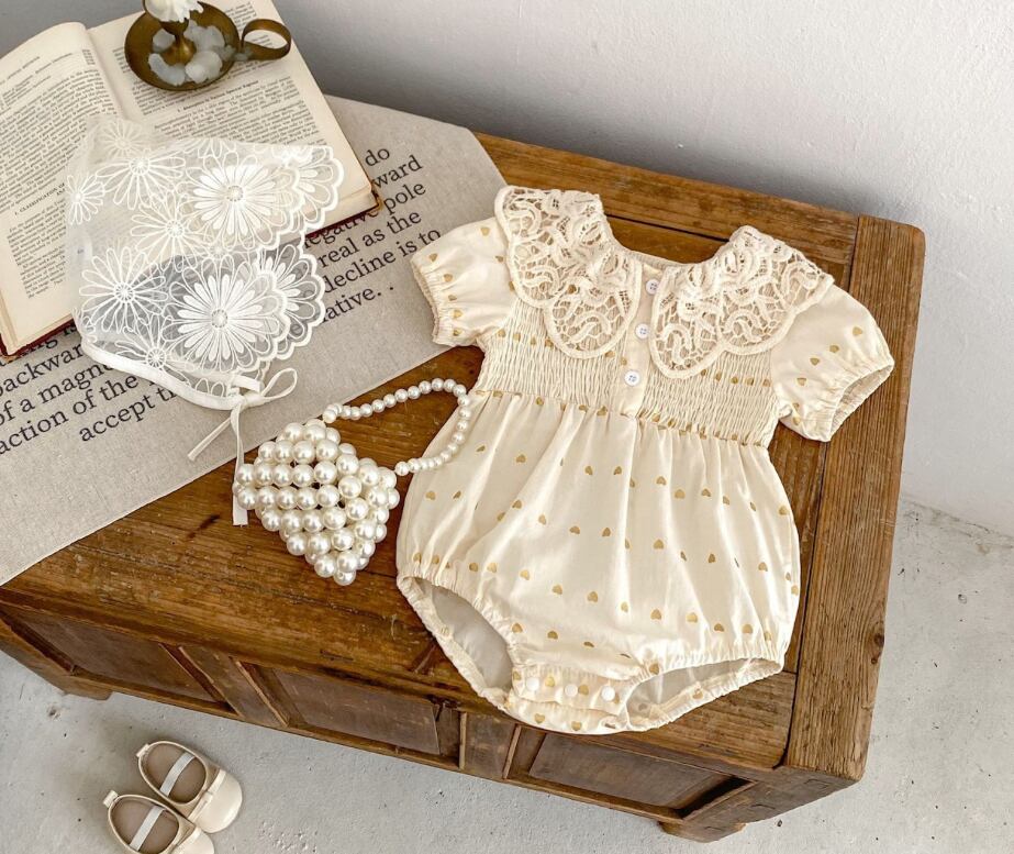 2025夏の新作 ロンパース 女の子レース開襟半袖ジャンプスーツ ベビー服