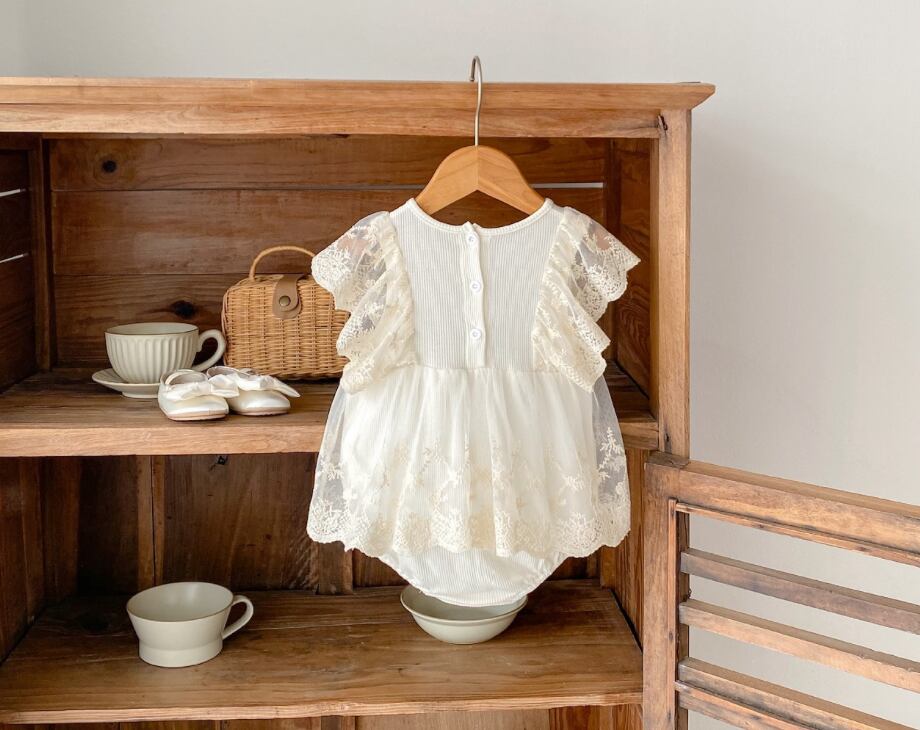 【予約】【66-100】エレガントレース ワッフル ロンパース pp