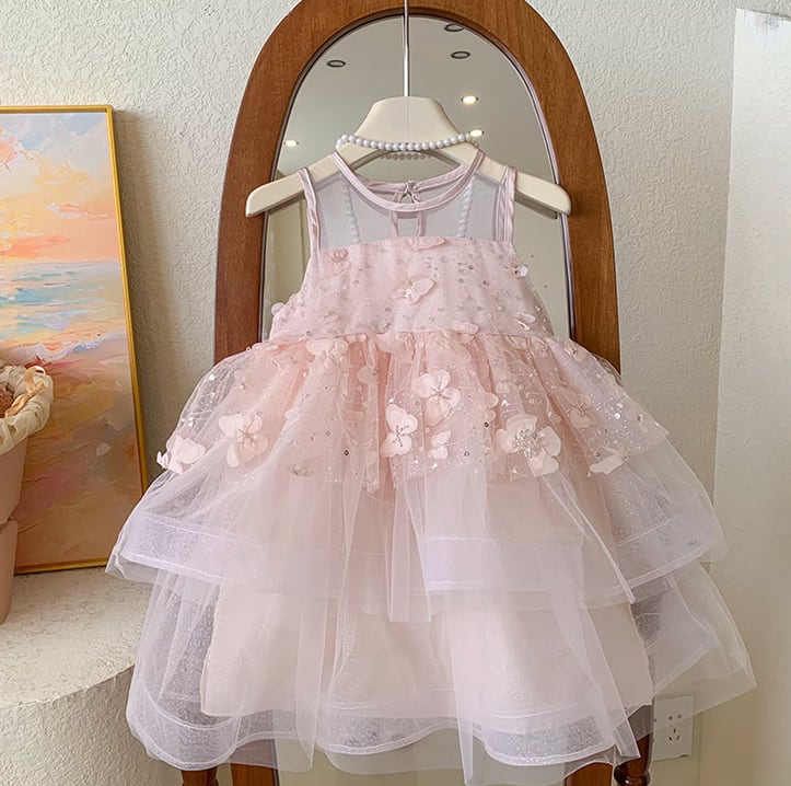立体バタフライ メッシュベスト キッズドレス ワンピース