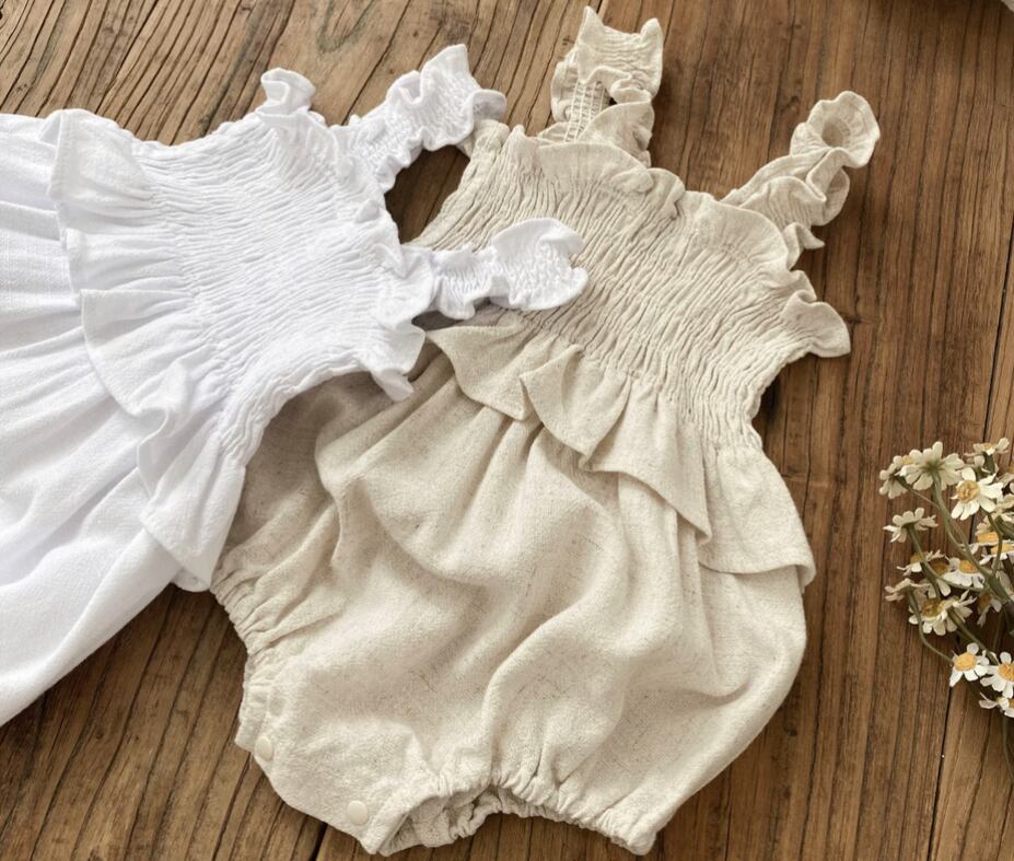 新生児服 夏の新作女の子ロンパース 赤ちゃん無地フリルキャミソール
