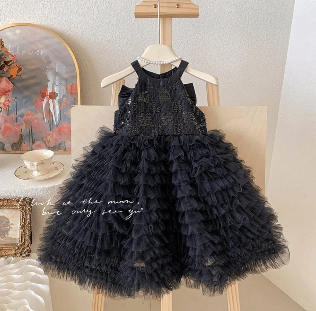 華やかなスパンコールが施されたティアードチュールドレスが新登場!特別な日のイベントや誕生日パーティーにぴったりのアイテムです♡ 優雅なチュール素材とティアードデザインが、お子様をさらに引き立て、夢のような瞬間を演出します♡