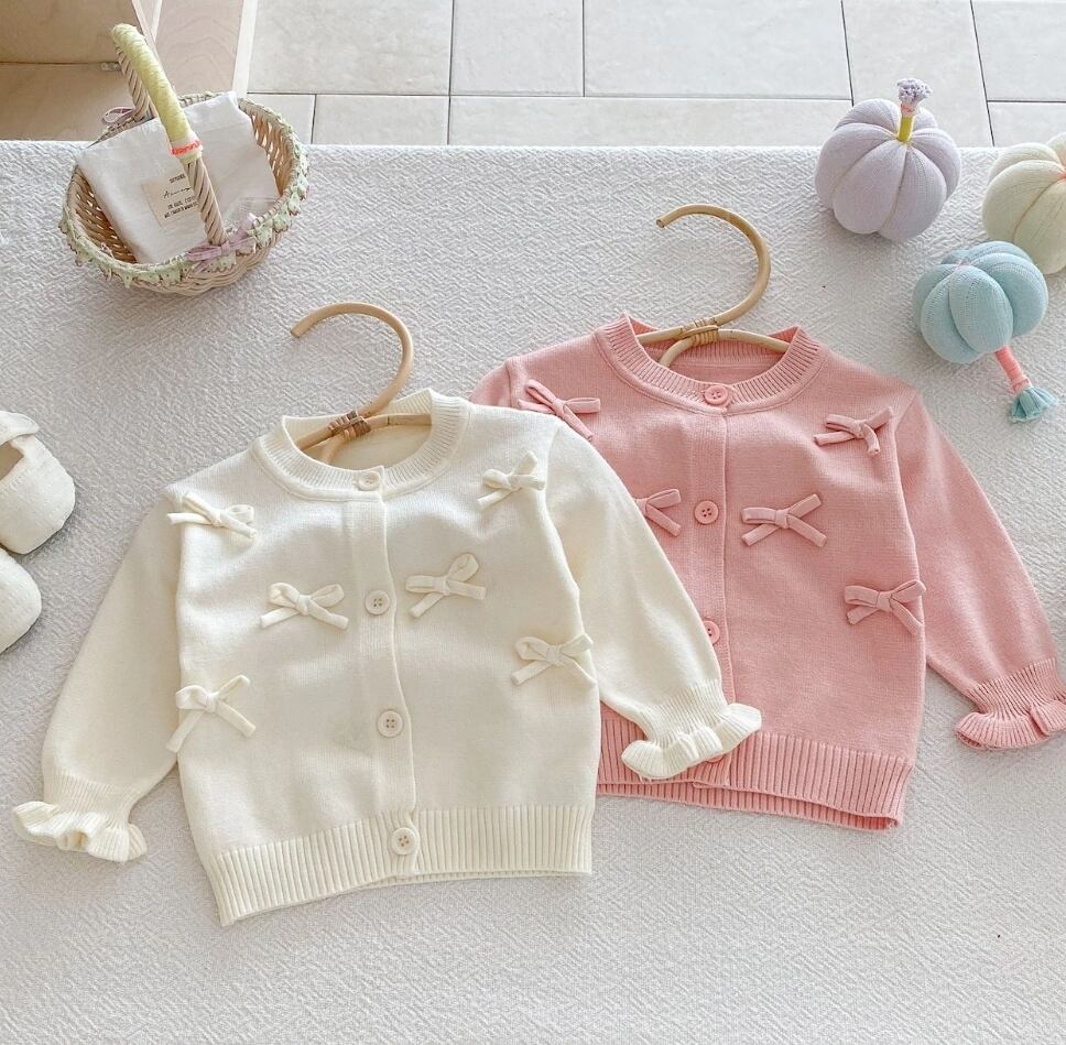 女の子リボンニットカーディガン コート 赤ちゃんのトップス