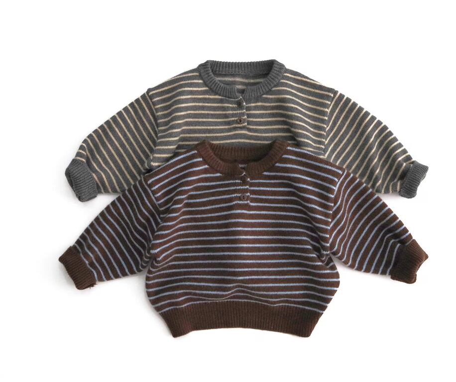 韓国版子供服 男の子女の子ストライプヘッダーセーター