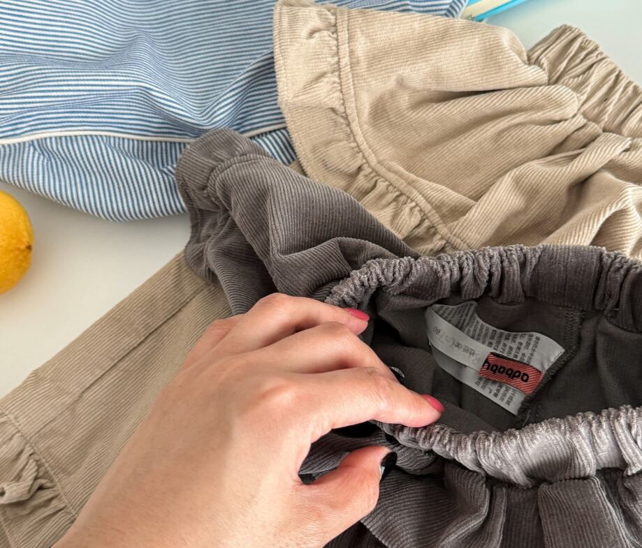 可愛らしいフリルデザインが特徴的なコーデュロイワイドパンツが登場!