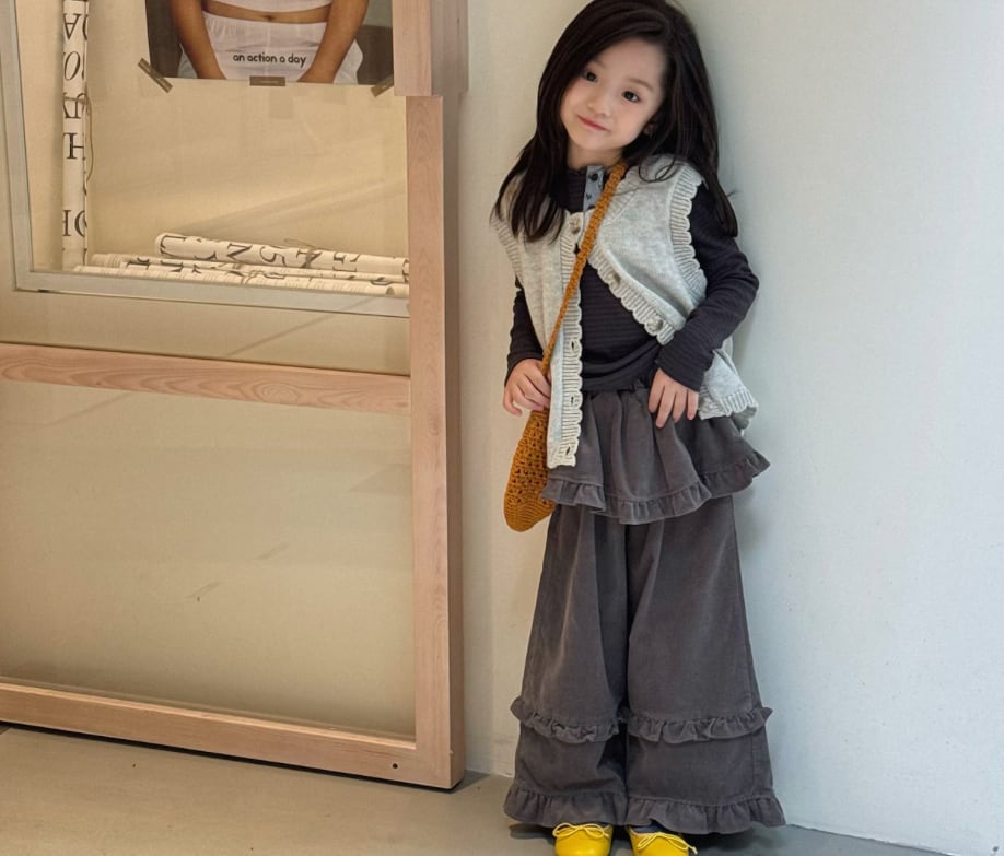 【予約】【80-130】2color コーデュロイ フリル ワイドパンツ PP