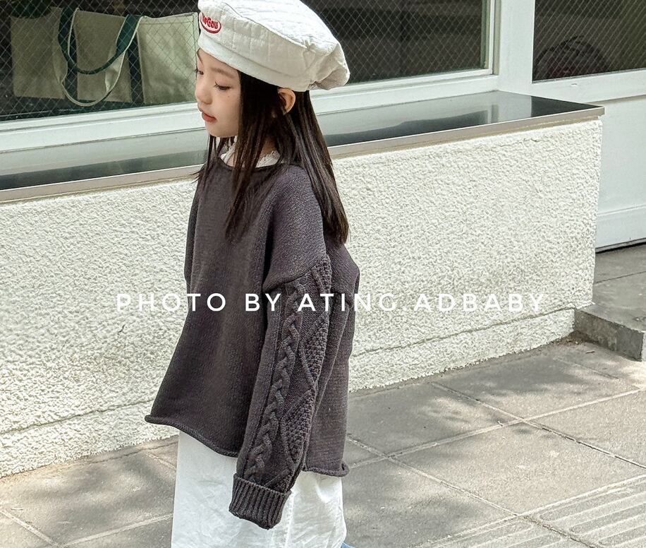 【予約】【80-130】2color 袖 ケーブル ゆったり ニット