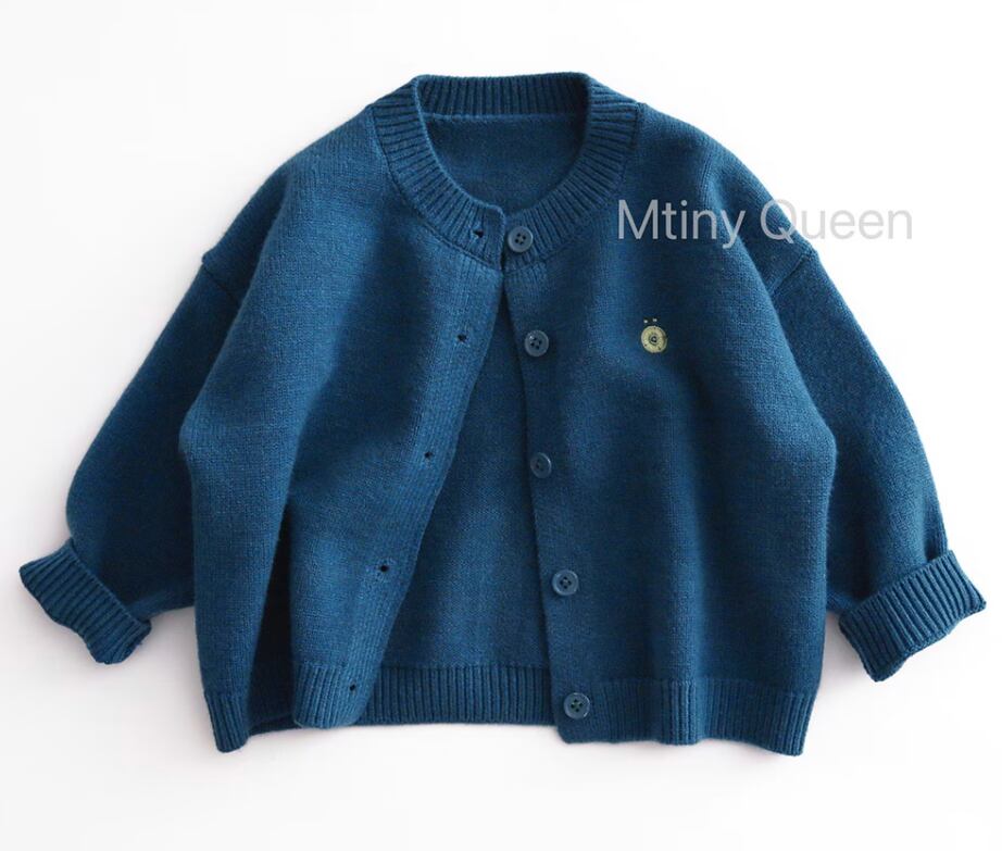 春と秋の新作子供無地刺繍ニットカーディガン 男の子女の子