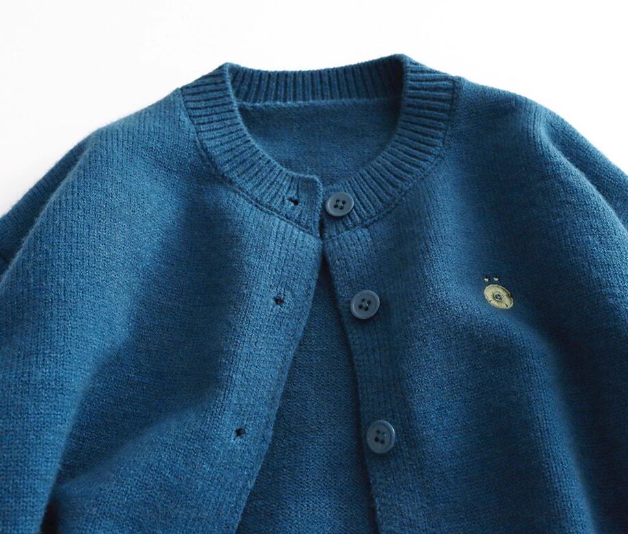 【予約】【80-130】ワンポイント ブルー ニット カーディガン PP