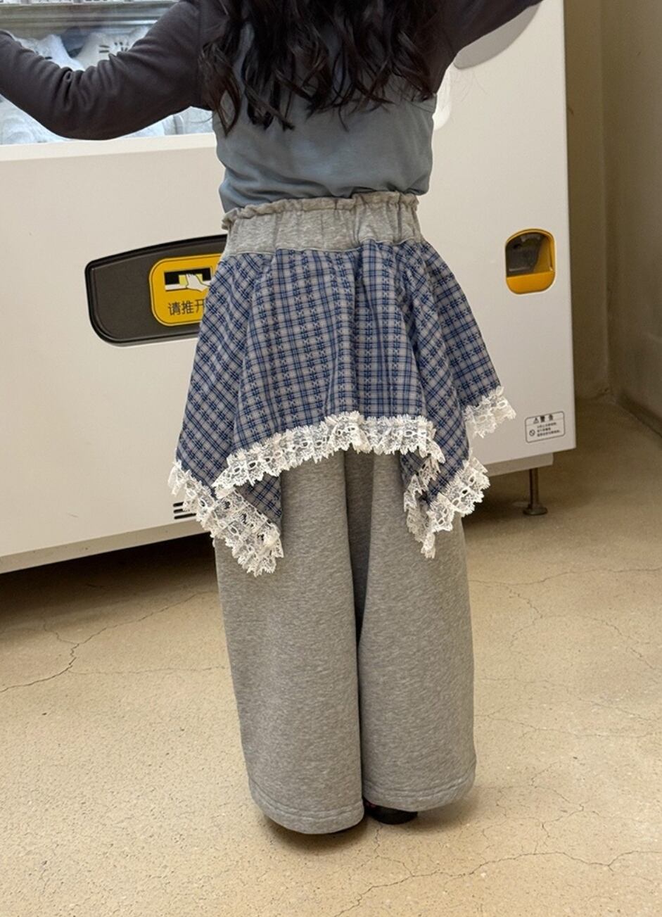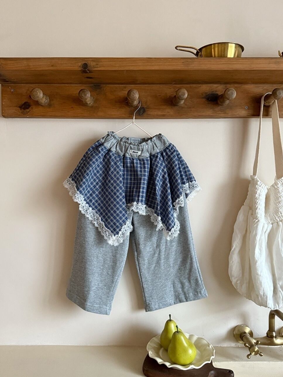 【予約】【90-150 】チェックスカート 付き ワイドパンツ スカート