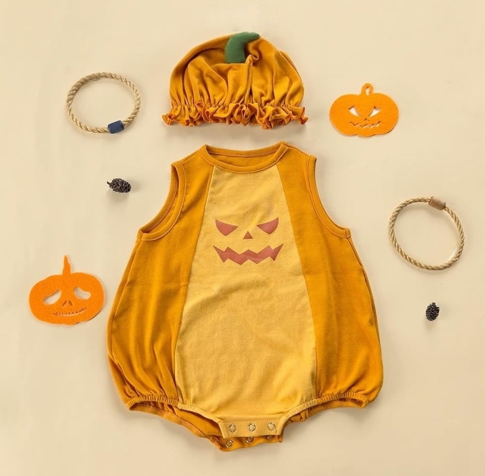 ハロウィンシーズンにぴったりな、かわいいかぼちゃデザインのなりきりロンパースが登場!お子様の特別な思い出を演出する一着です♡