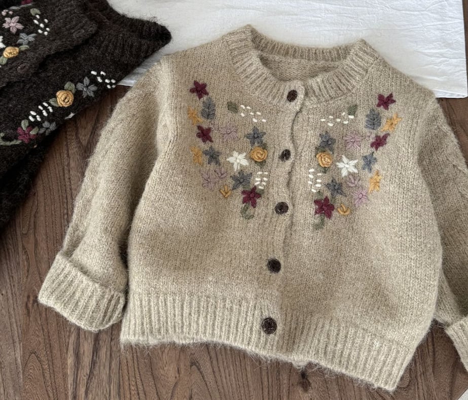 【予約】【90-150 】flower embroidery knit cardigan PP