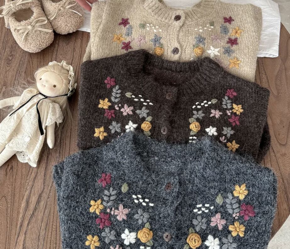 秋冬新作♡♡ 華やかな花柄刺繍が施されたニットカーディガン
