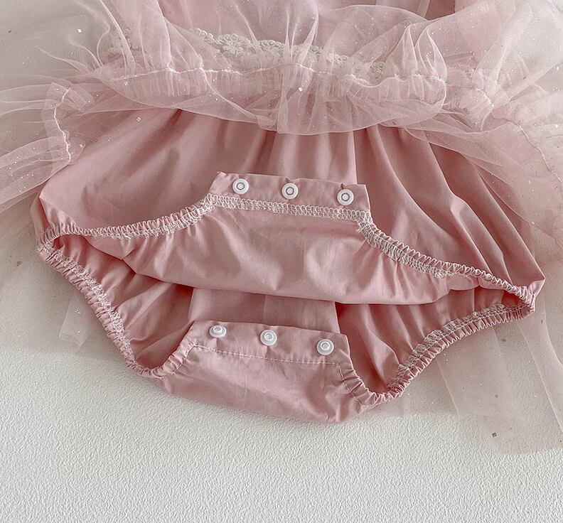 【予約】【66-90】sheer sleeves pink lace rompers. pp