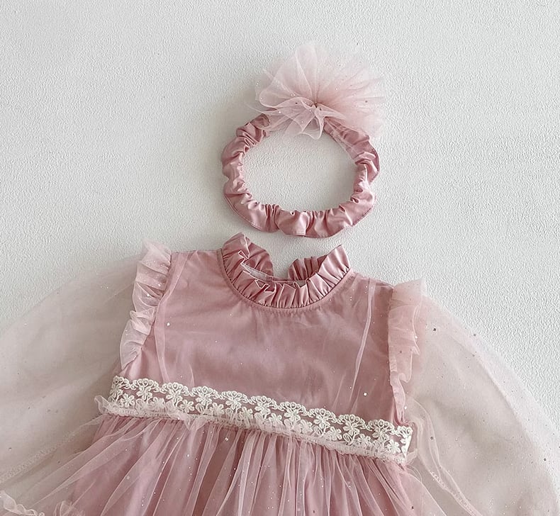 ヘアバンド付きでシアースリーブロンパースは、お子様の可愛らしさを引き立てるアイテム♡
