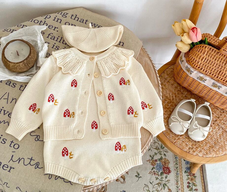 きのこ刺繍が可愛い ニット ロンパース です♡
