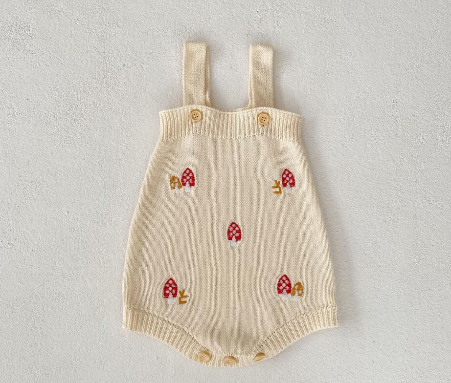 きのこ刺繍が可愛い ニット ロンパース です♡
