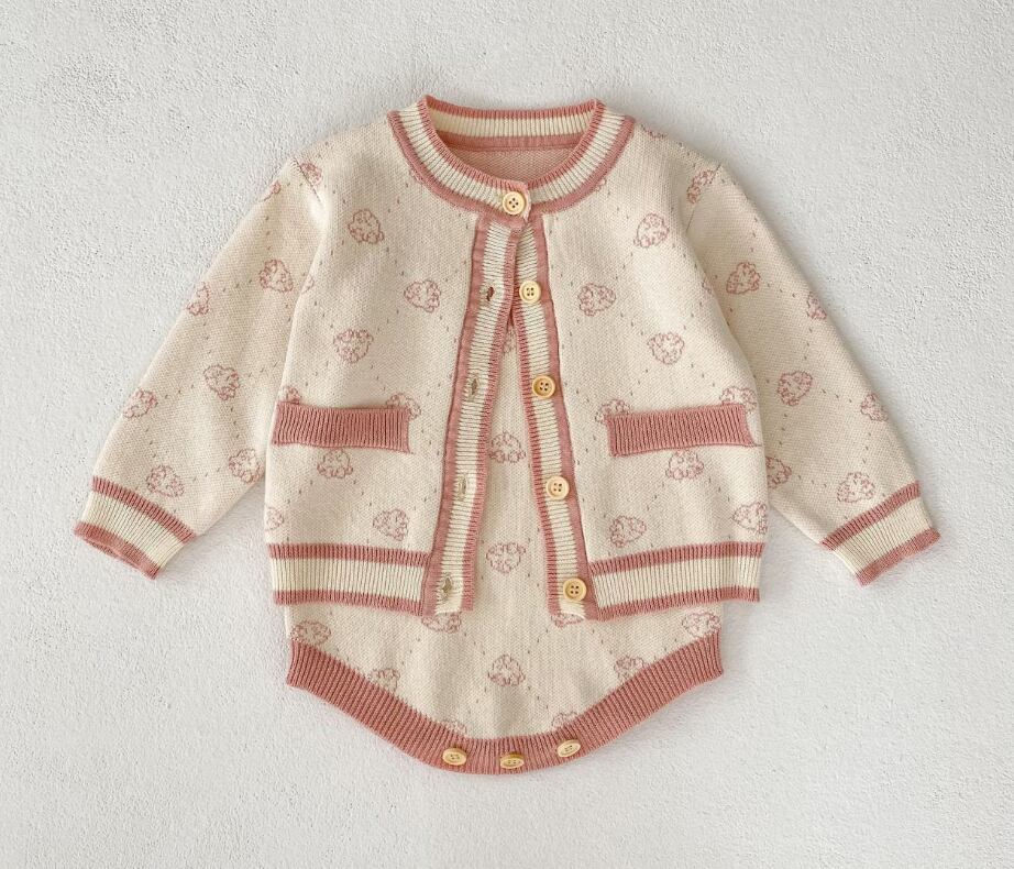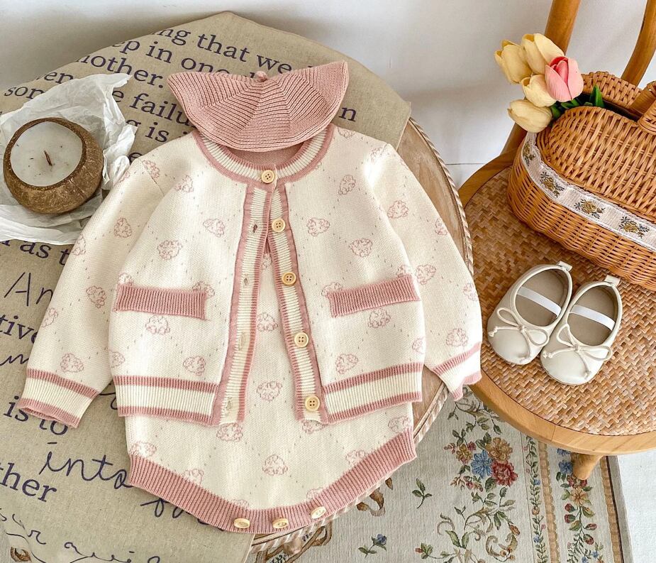 秋物 乳幼児女の子ベビー用 可愛い小熊の頭プリントニットジャケット