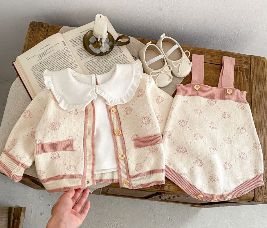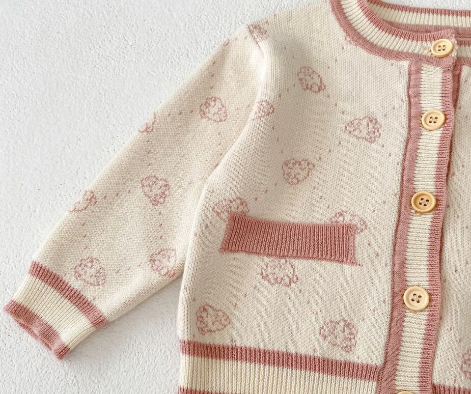 秋物 乳幼児女の子ベビー用 可愛い小熊の頭プリントニットジャケット