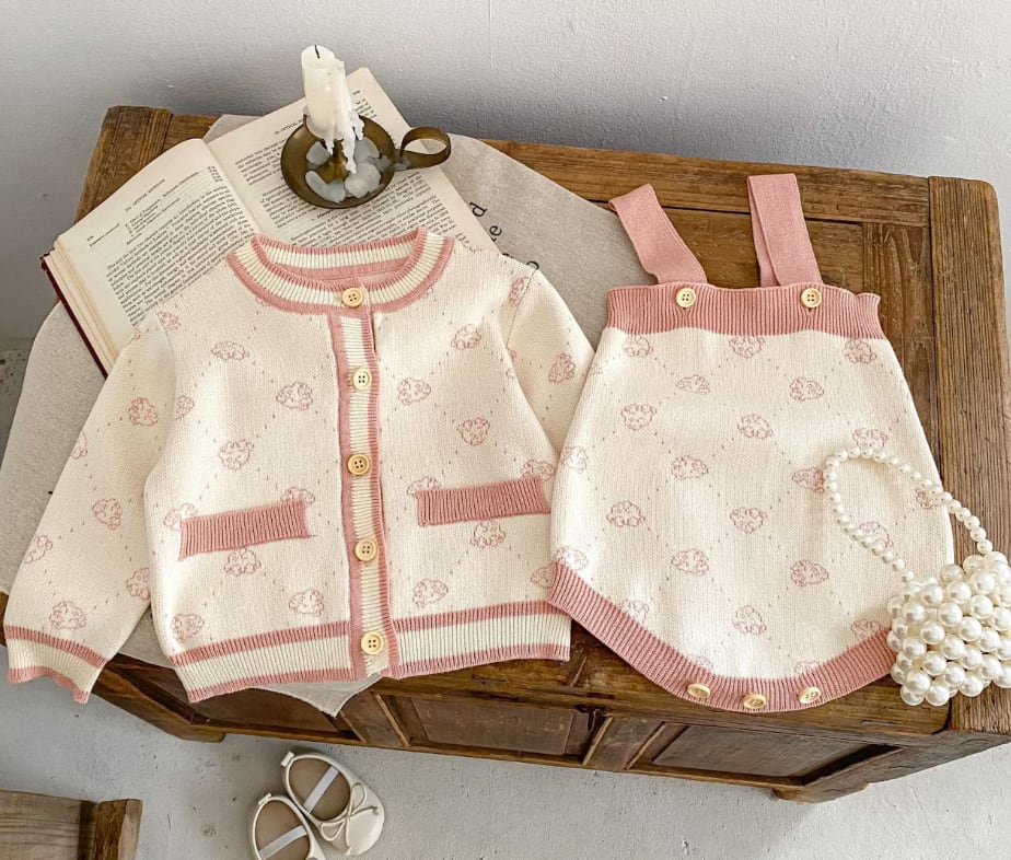【予約】【66-100】ピンクベア ニットカーディガン