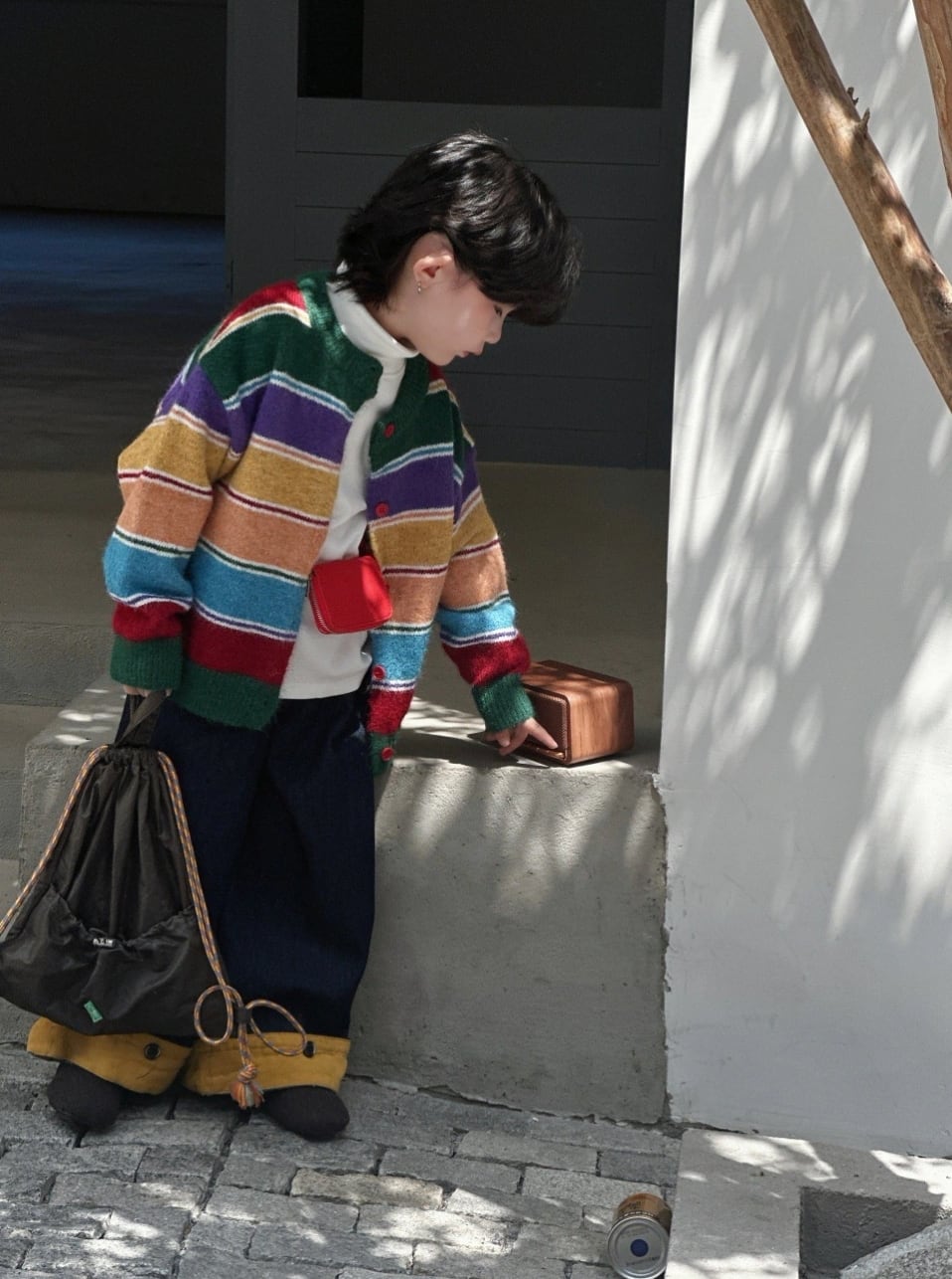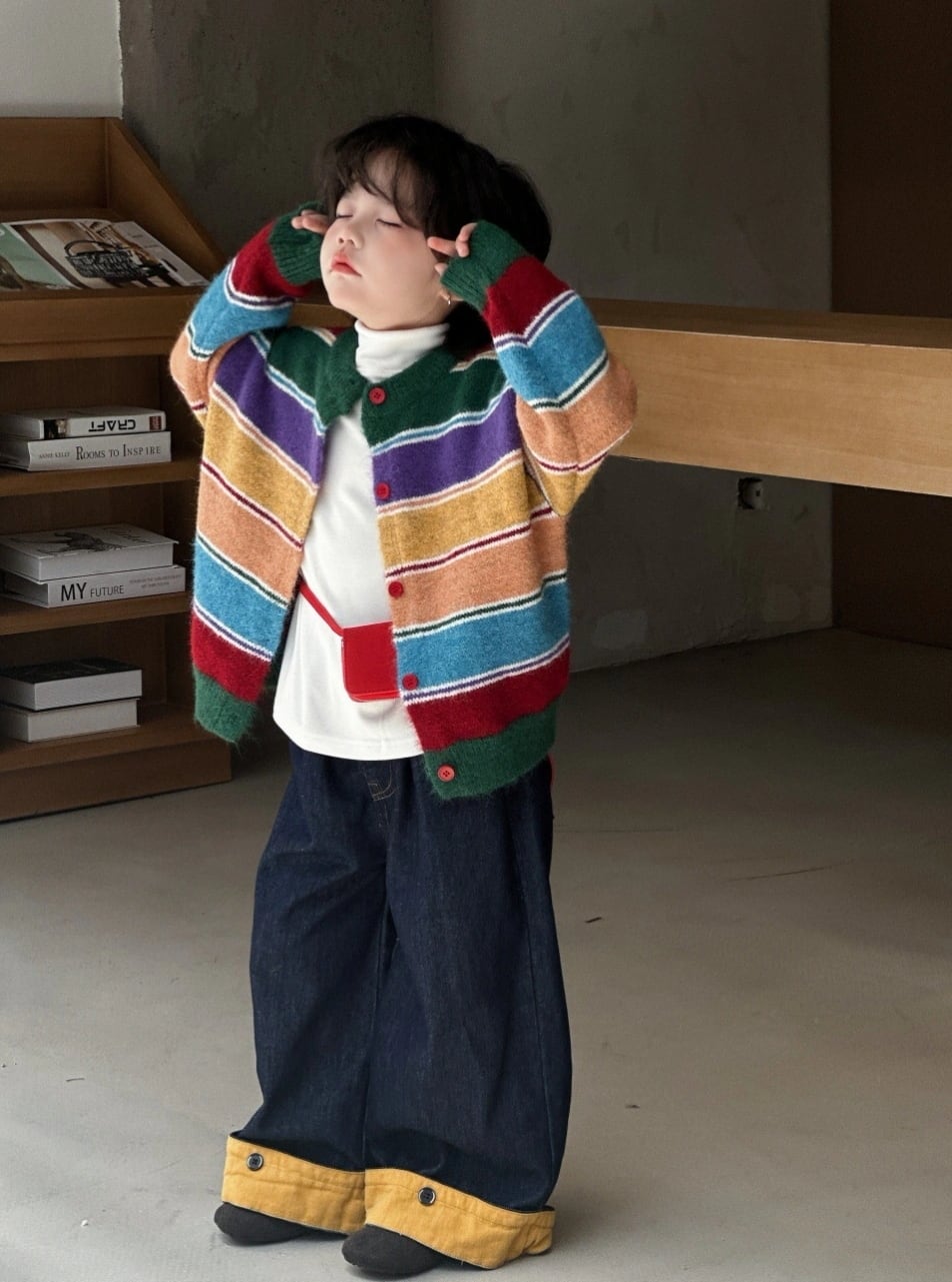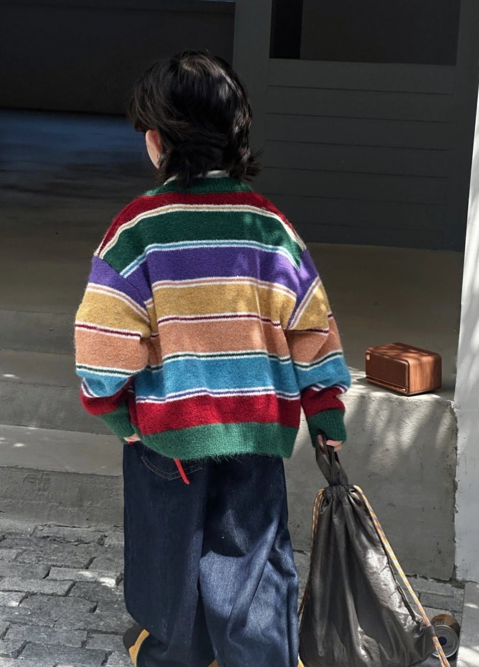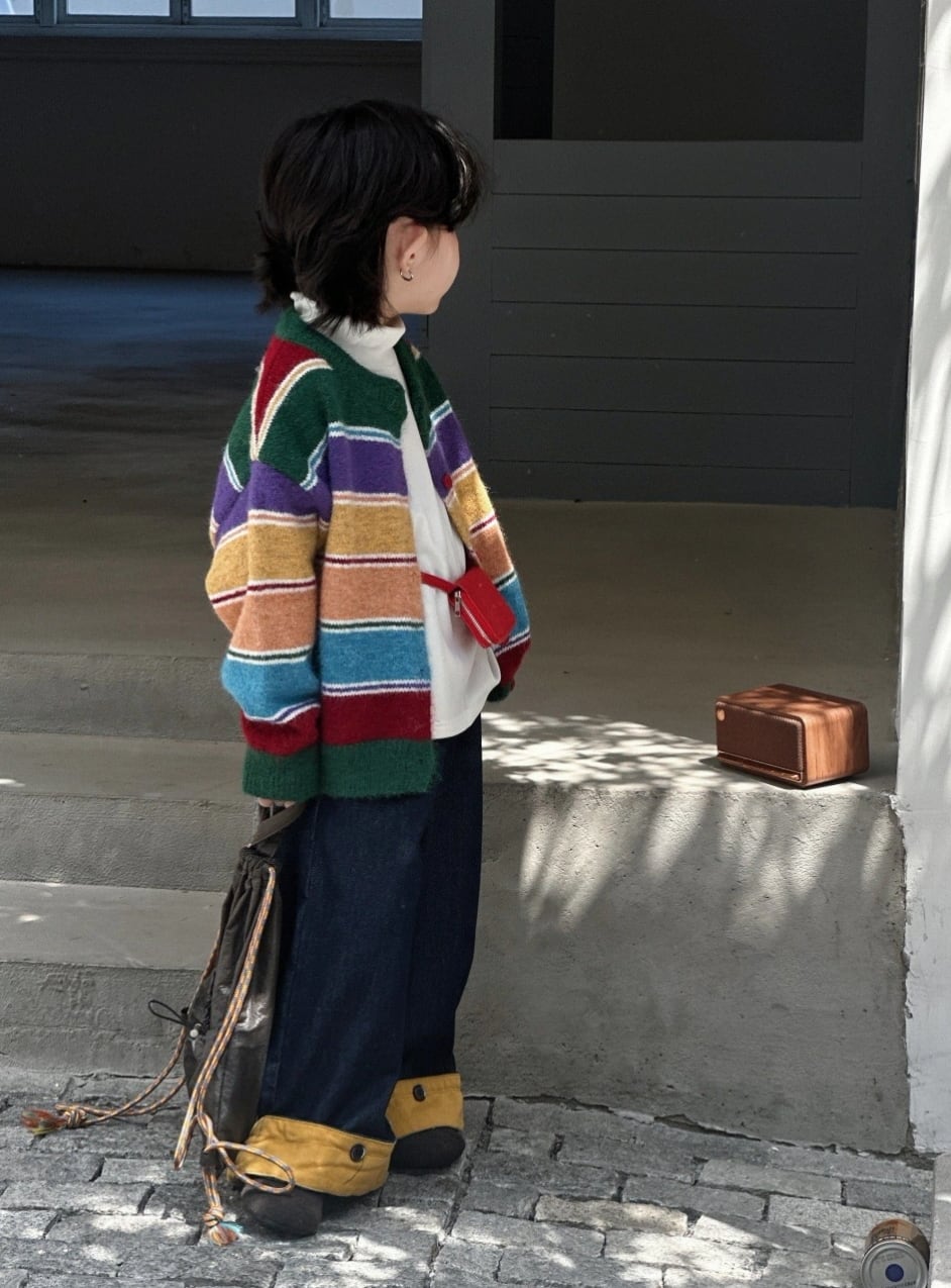 【予約】 リンクコーデ【90-150 】マルチカラー ニットカーディガン