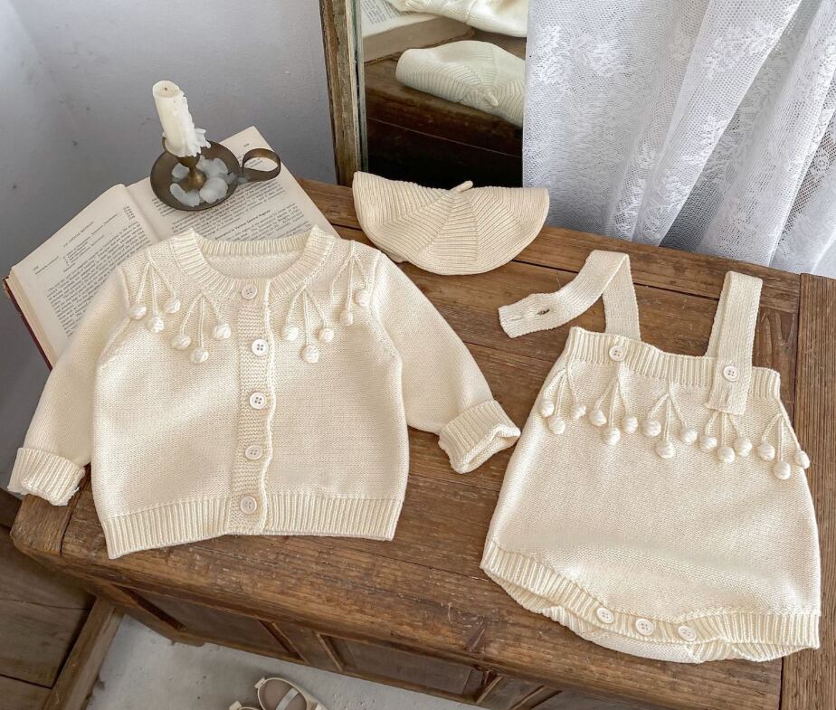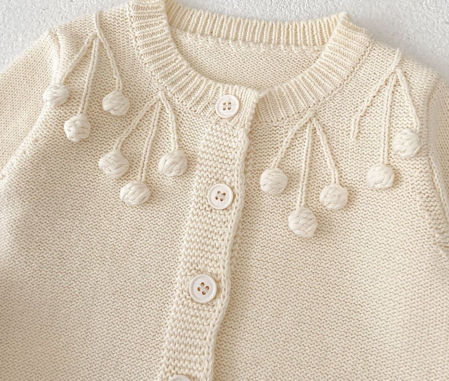 【予約】【66-100】ぽんぽん リース ニットカーディガン