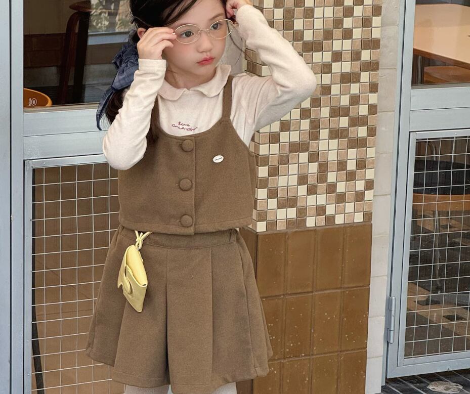 【予約】2点セット【80-130】2color ツィード調 ボタンベストスカート pp