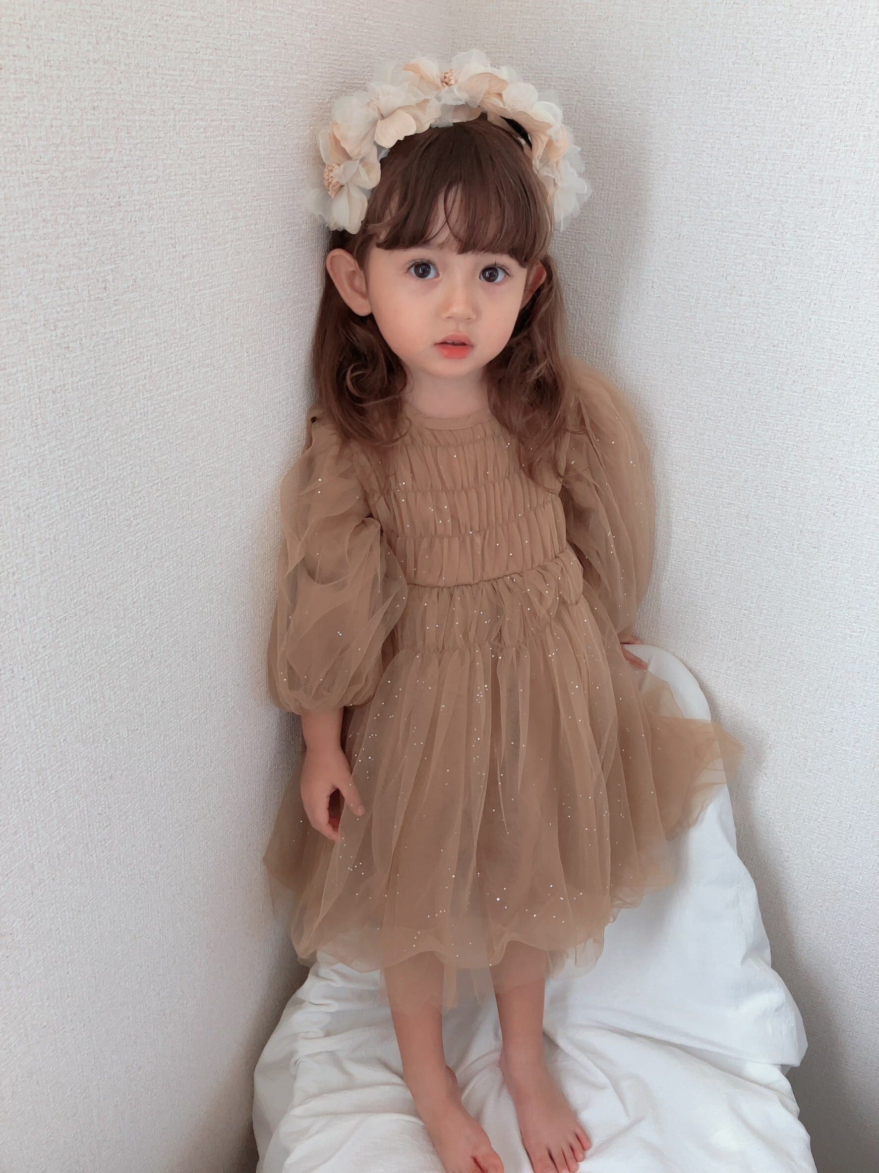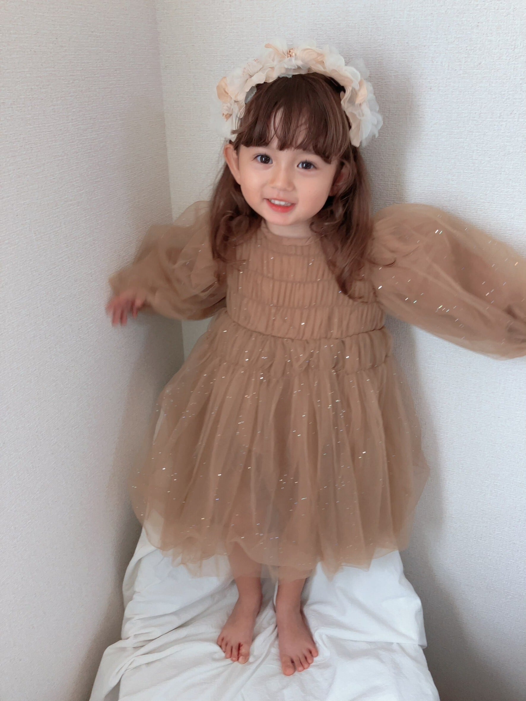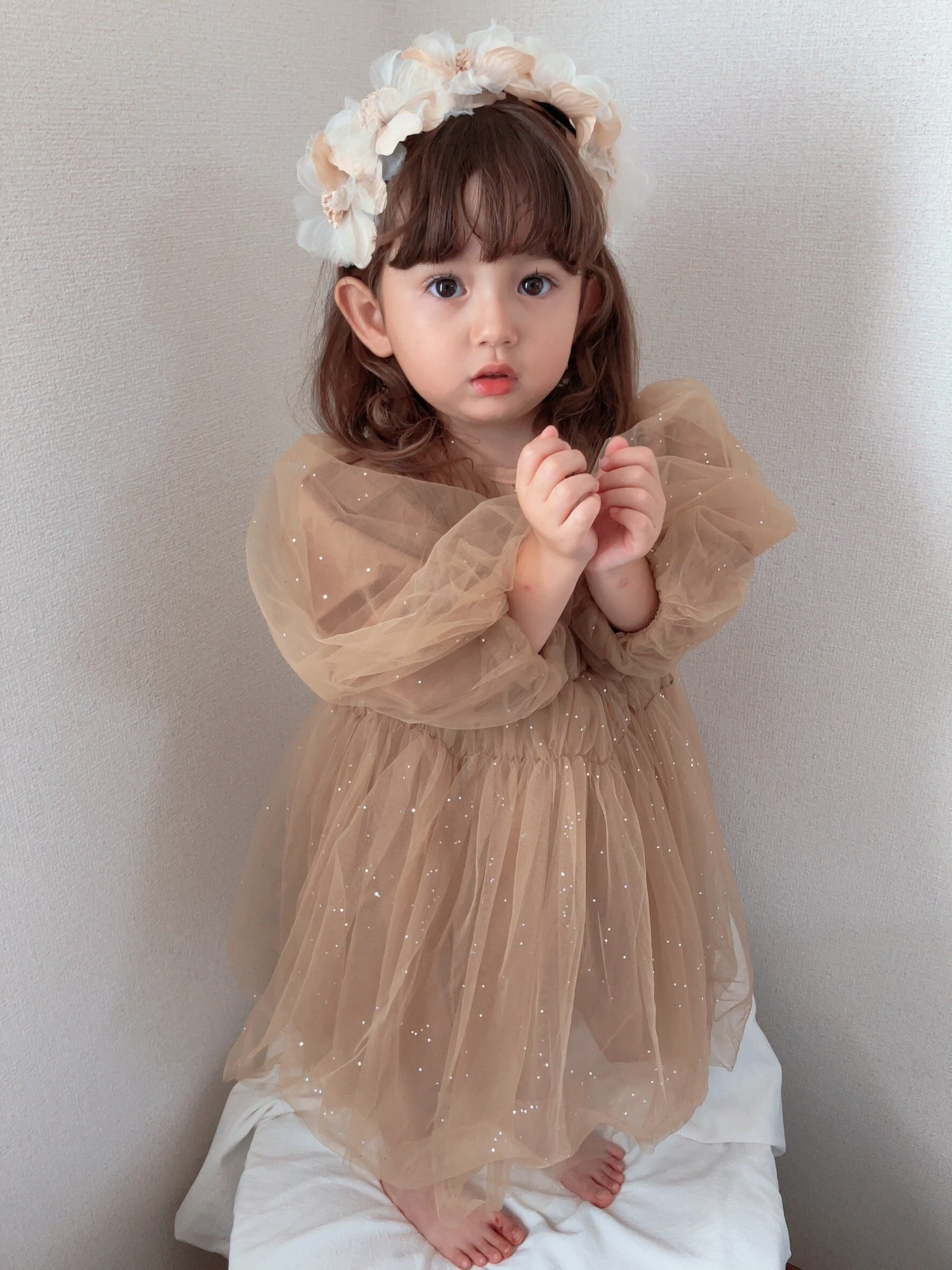 アウトレット【即納】【110】パフスリーブ チュール ドレス