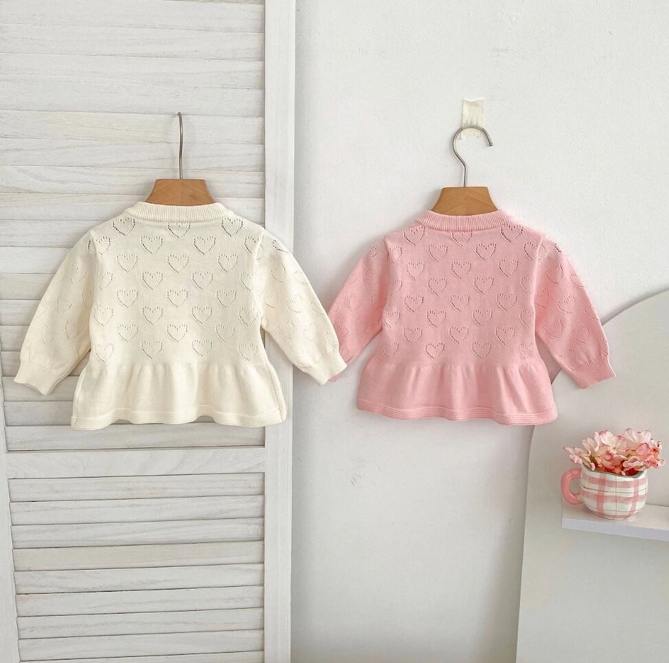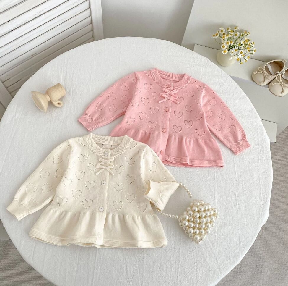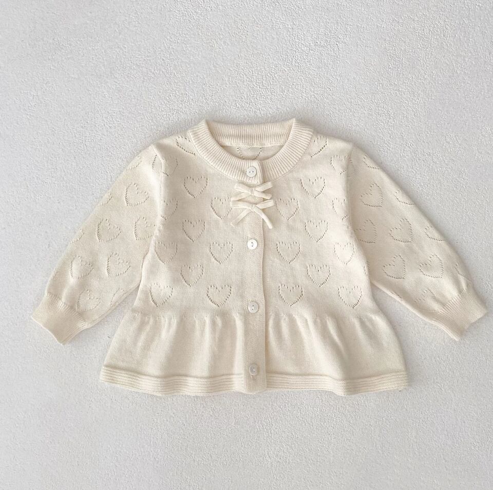 可愛らしいダブルリボンと透かし網ハートのデザインが特徴のニットカーディガンです♡ 快適さとスタイルの両立を叶えた一枚で、日常使いはもちろん、特別なシーンにも対応できる万能アイテムです♪