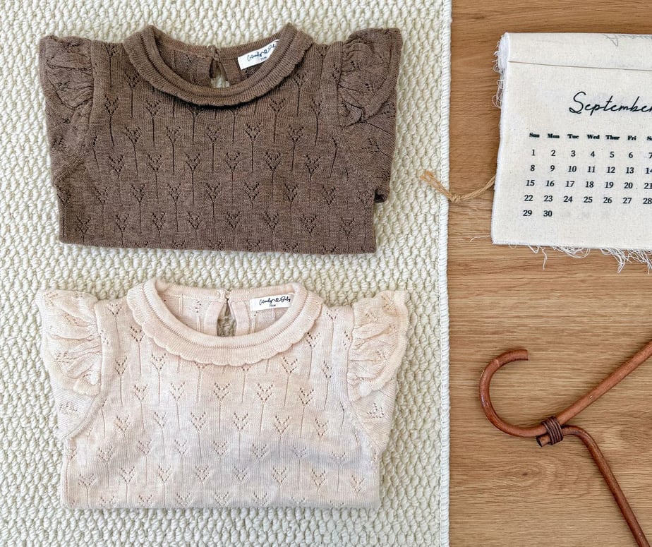 2025秋の新作 赤ちゃんニット 女の子丸首フレアスリーブ