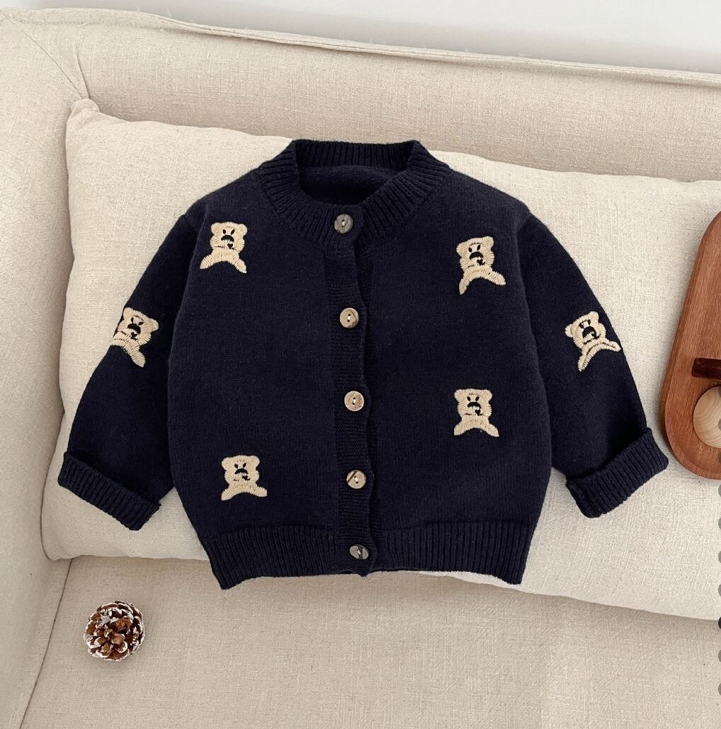 【予約】【73-110】くまさん 刺繍 カーディガン