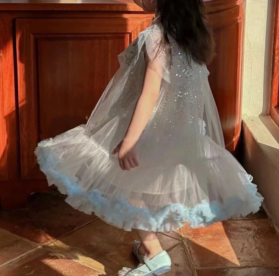 【予約】【90-150 】2color アイスブルー &ベージュ スパンコール チュール ドレス