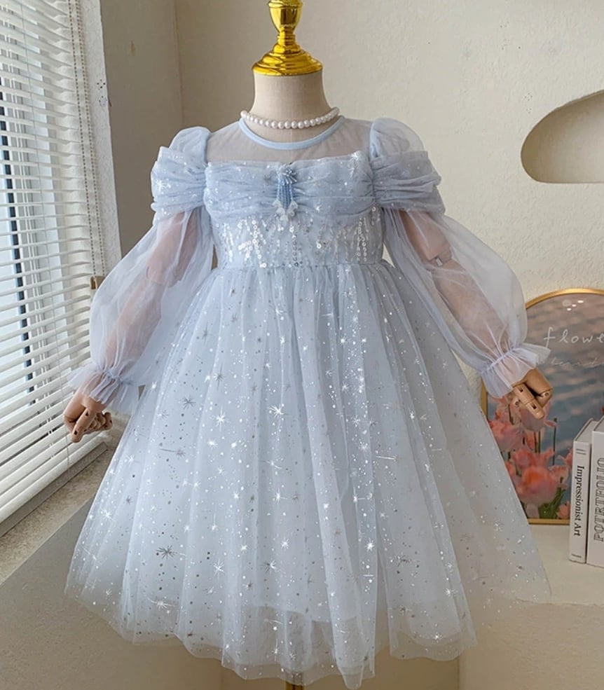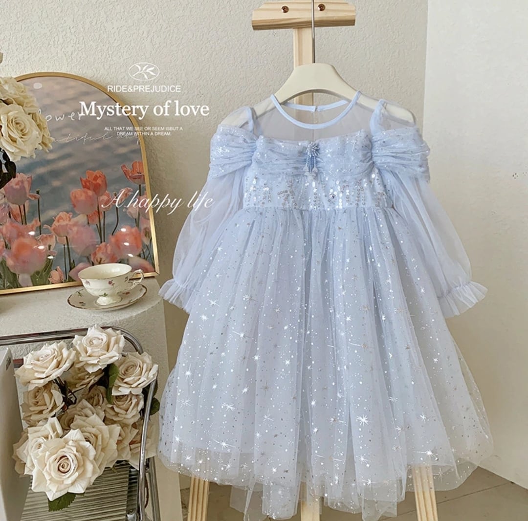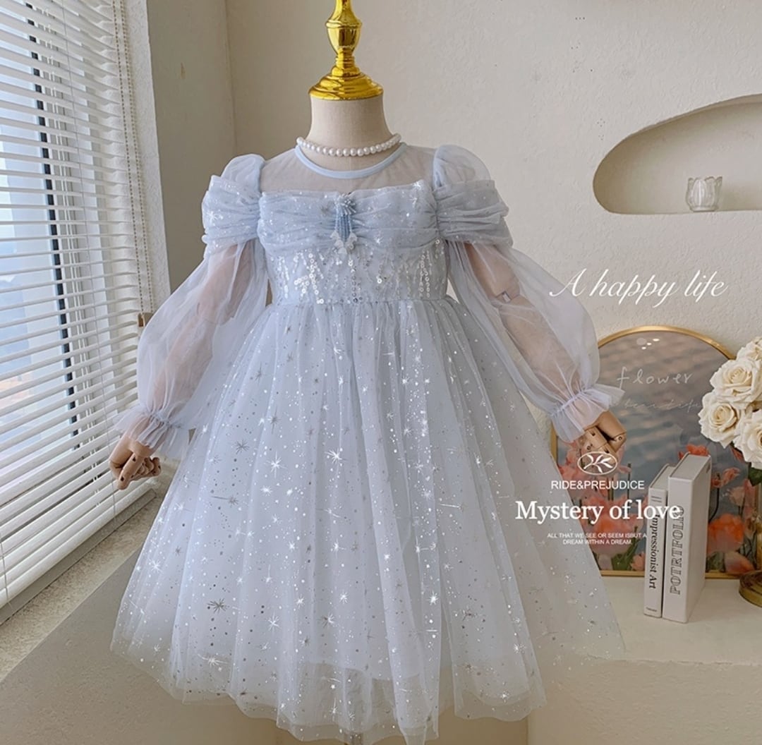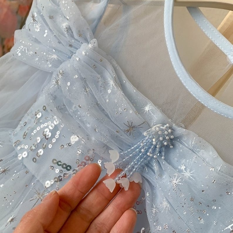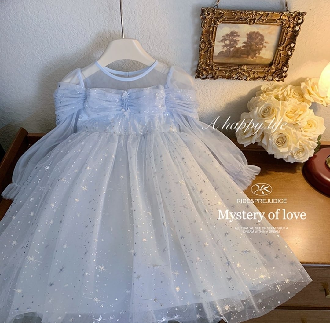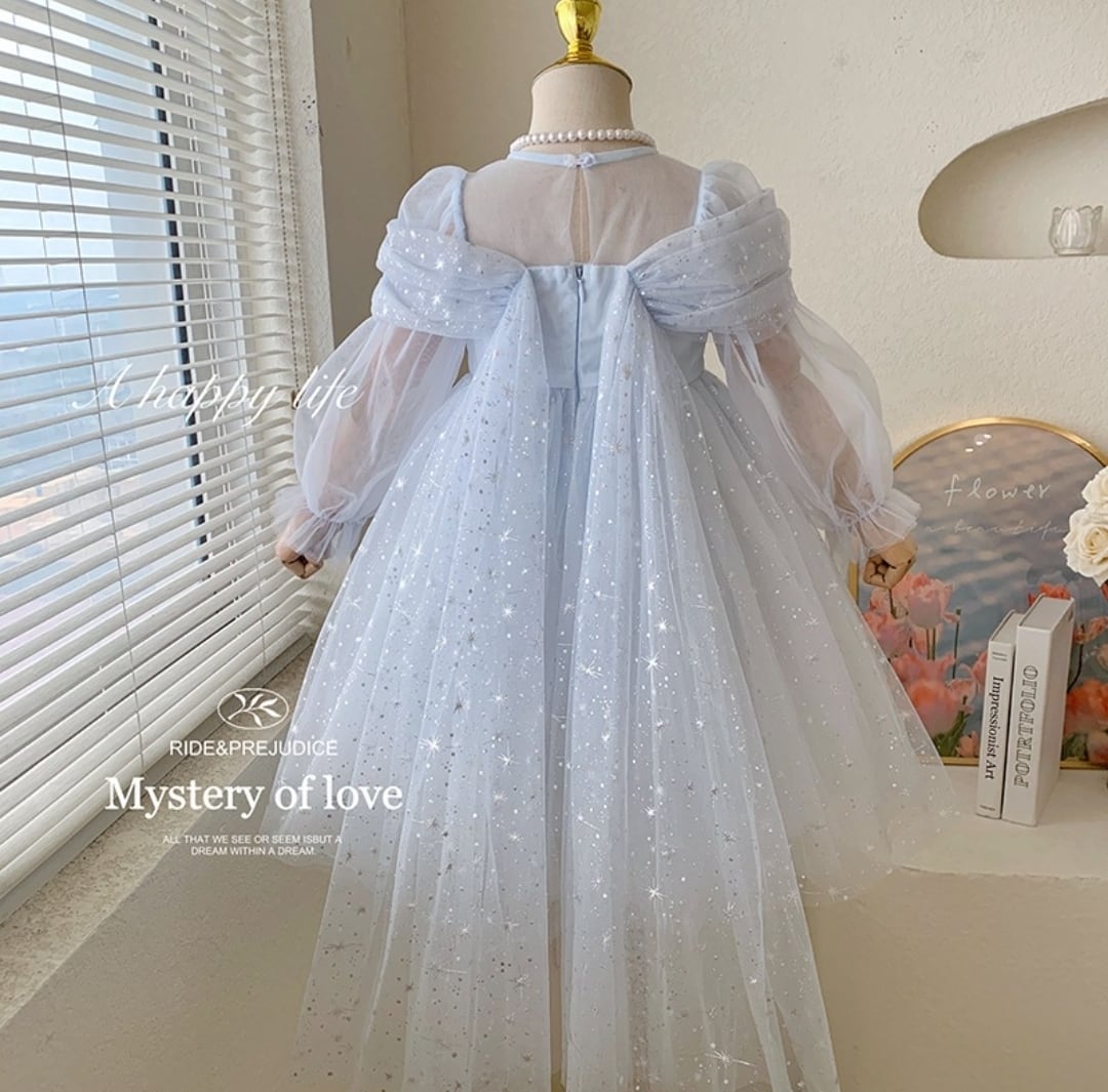 【予約】【90-150 】アイスブルー ベール プリンセス ドレス pp