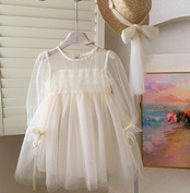 女の子バブルスリーブ長袖ワンピース