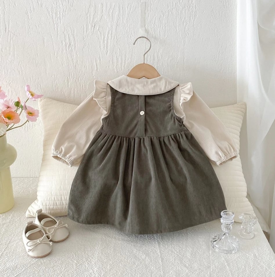 可愛いコーデュロイ生地を使用したビッグリボンワンピースです!