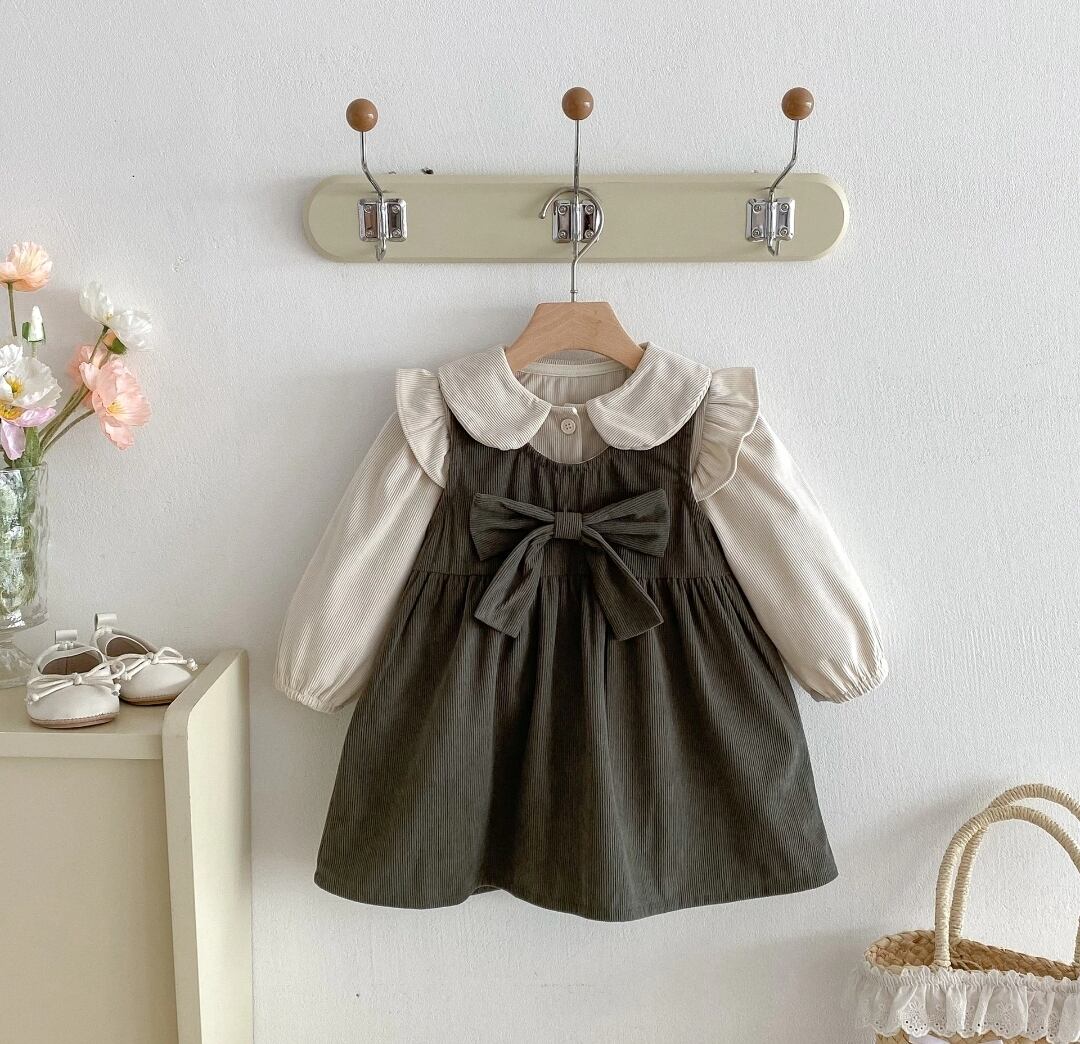 【予約】【80-130】コーデュロイ ビッグリボン ワンピース pp