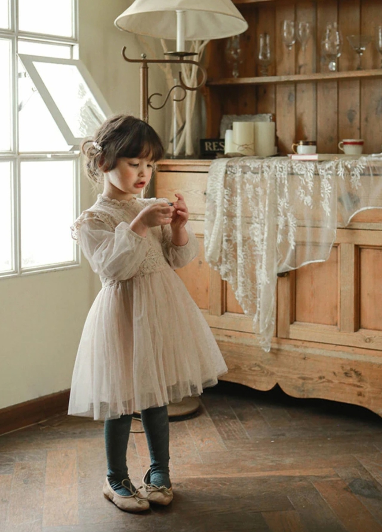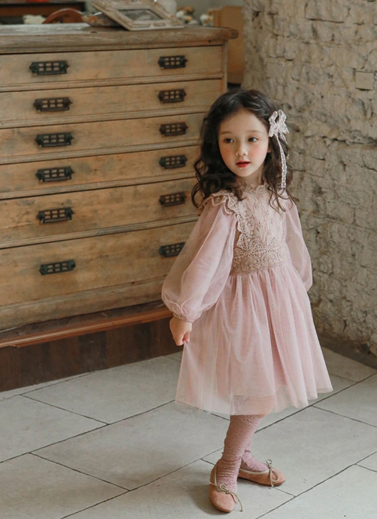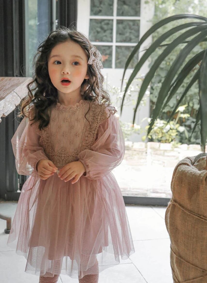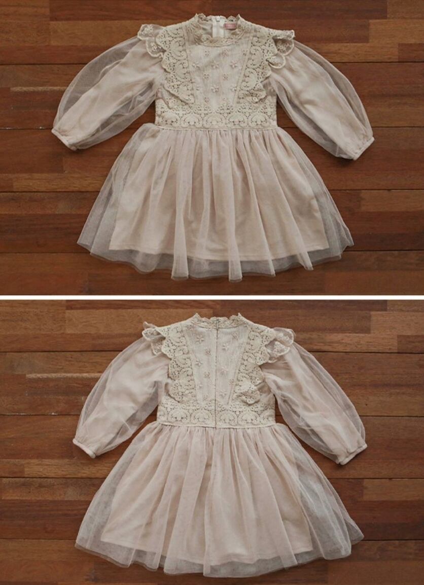 リッチなレース&チュール素材が華やかさを引き立て、お子様の特別な日やお誕生日撮影に最適です♡