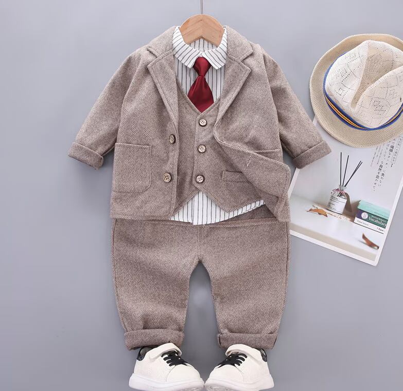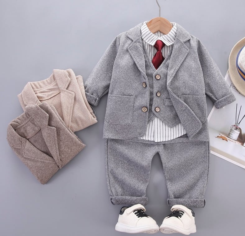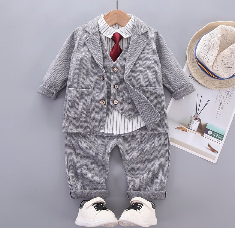 スタイリッシュなネクタイとセレモニースーツがセットになったお子様向けの4点セットでこれだけでOK