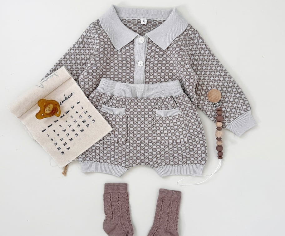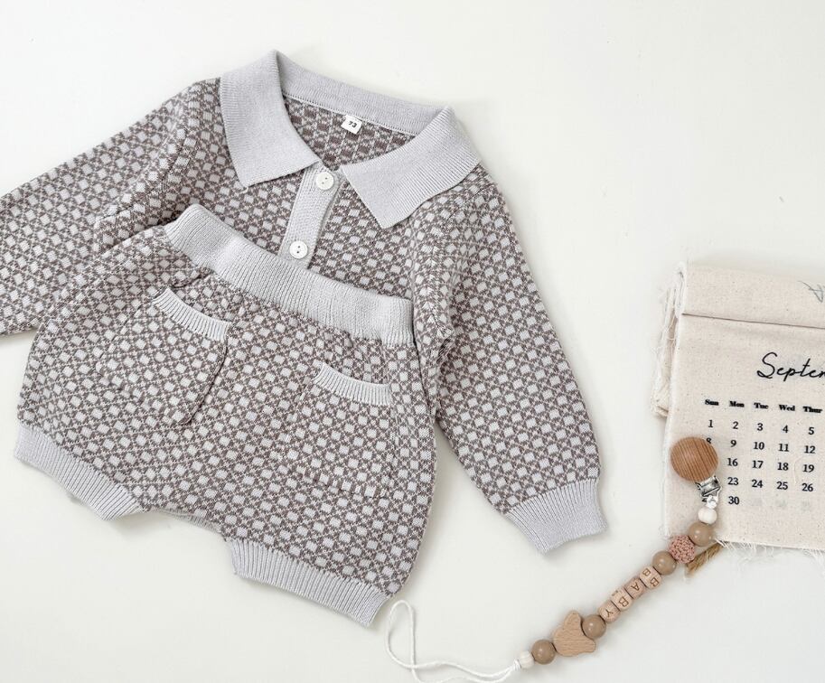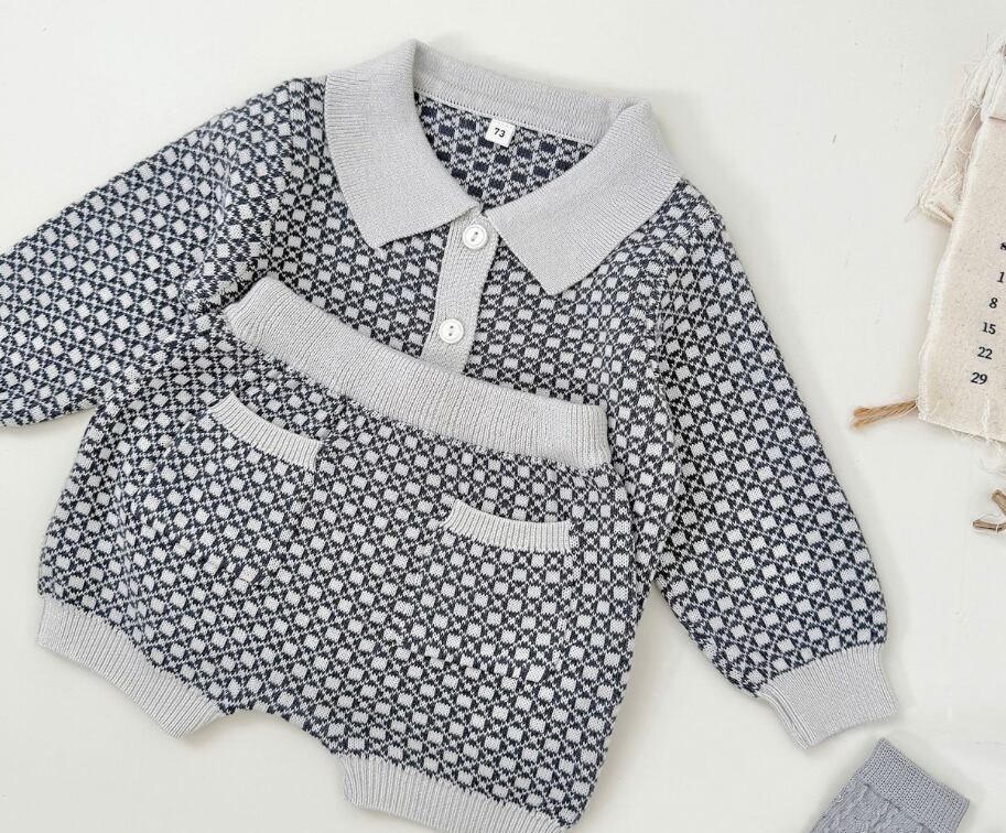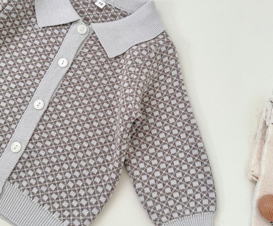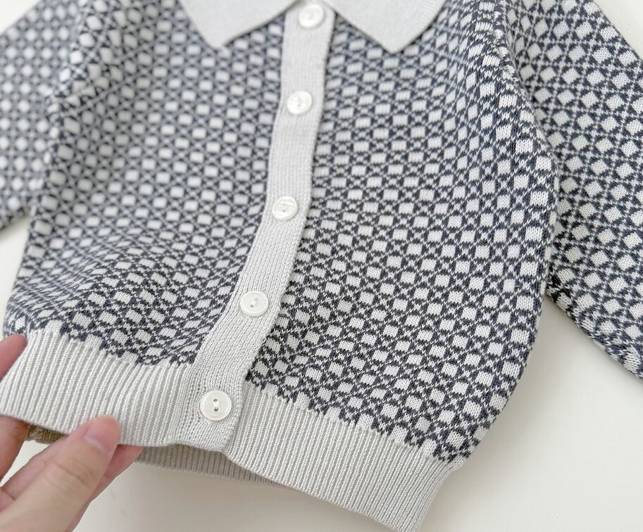 2025 秋冬新作 男の子 上下セット レトロ柄 カラー ニットカーディガン