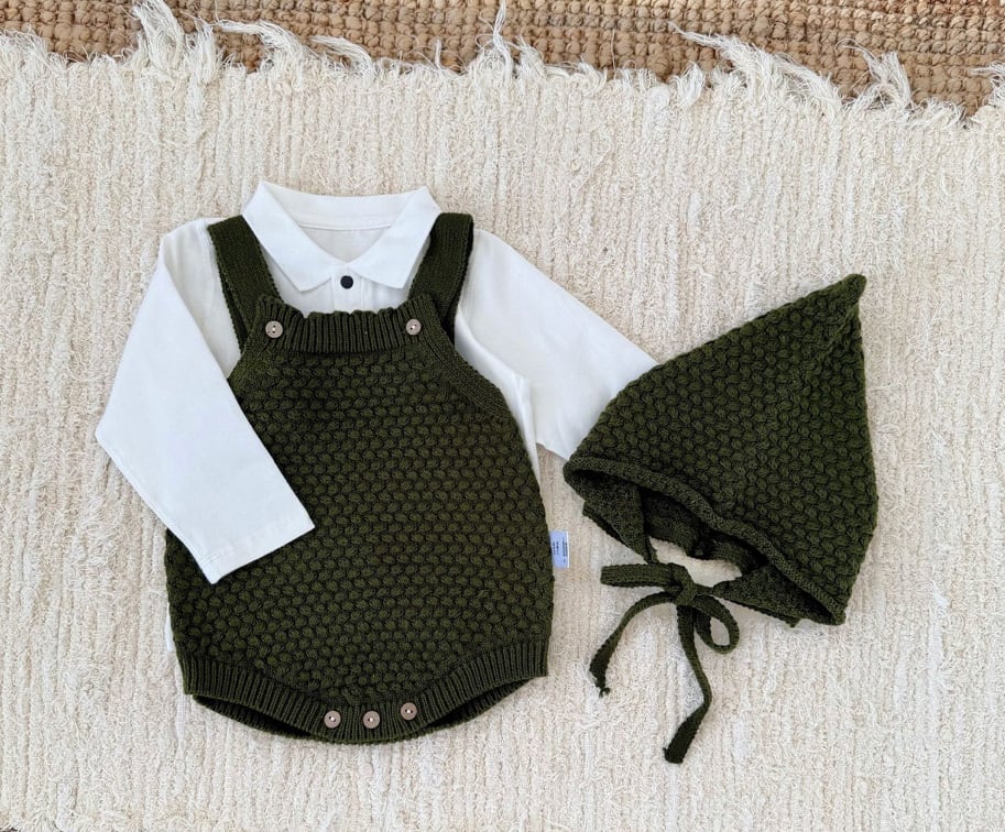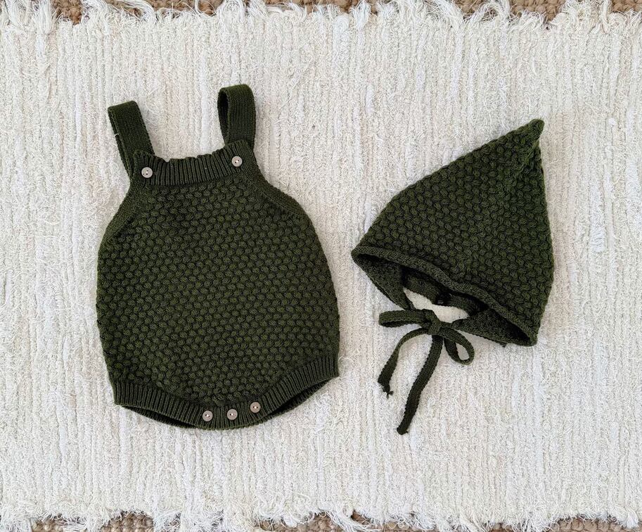 【予約】【66-90】ボールニット ロンパース & ボンネット PP