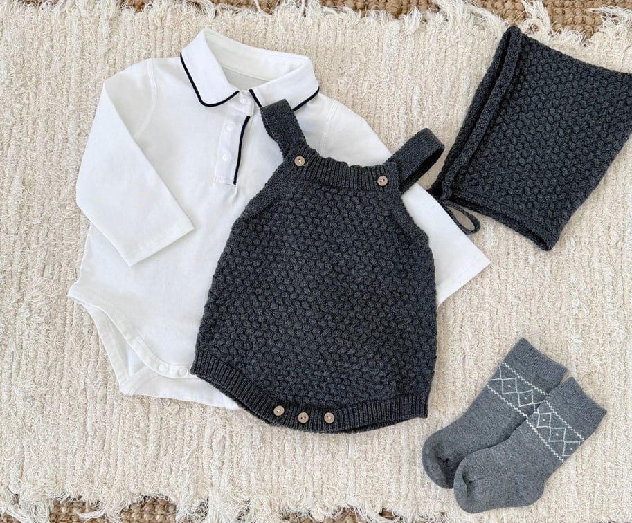 上質なボールニット素材を使用したロンパース。