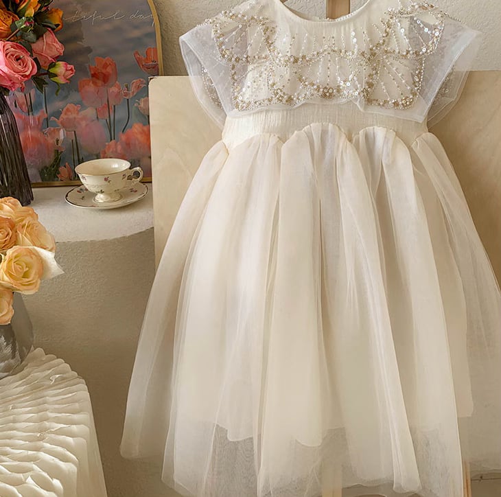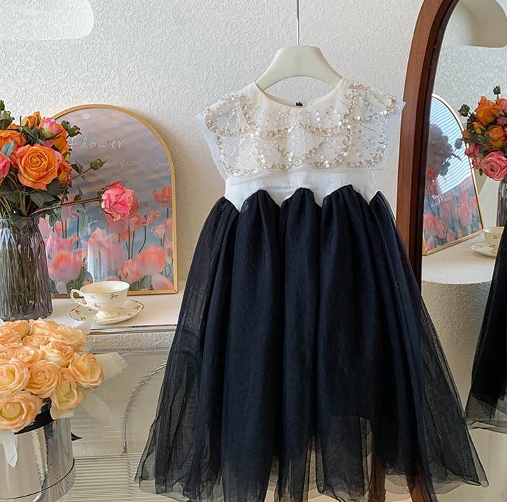 【即納】【100-140】2color スパンコール チュール ドレス PP