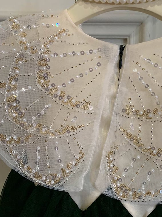 華やかなスパンコールとチュールの組み合わせが魅力的なドレスです♡