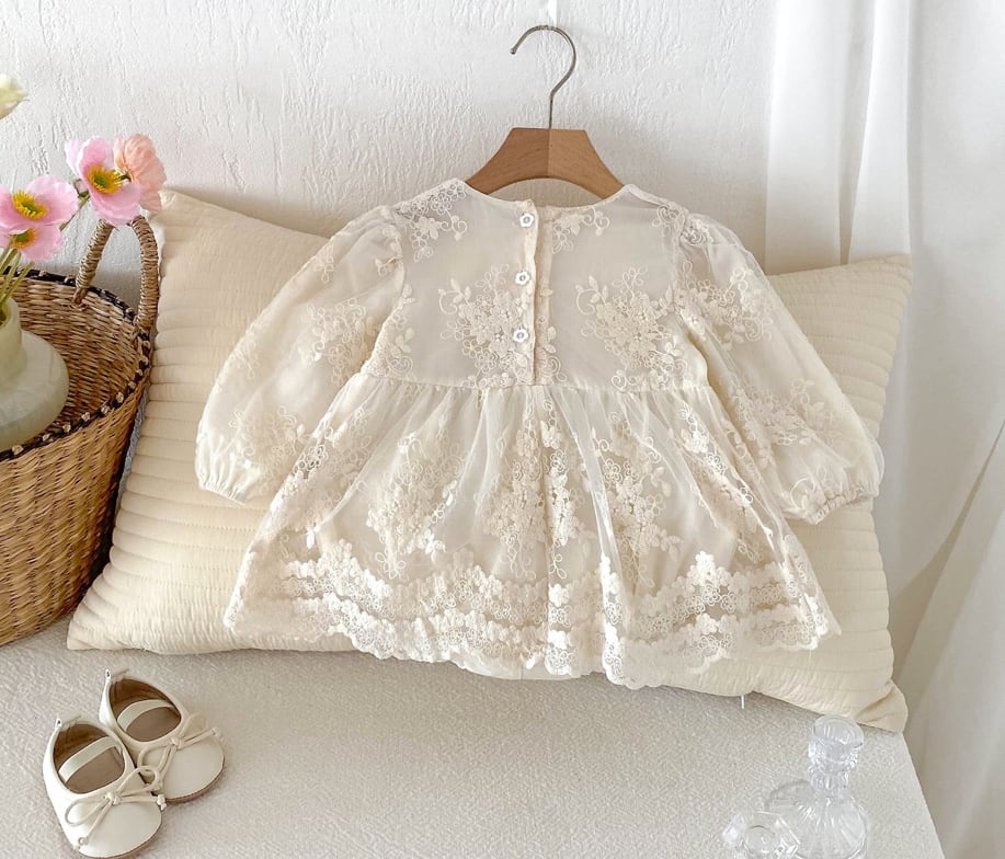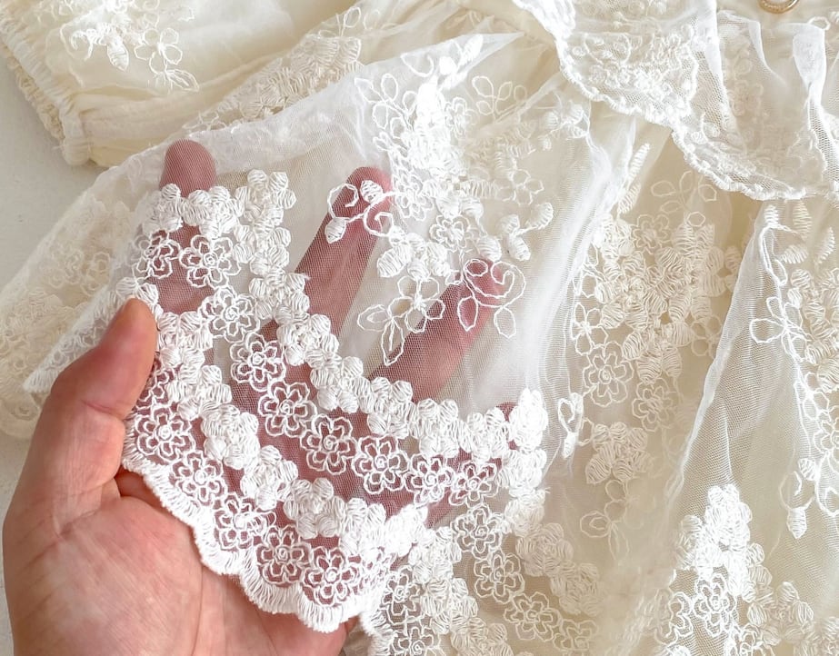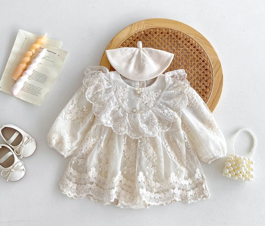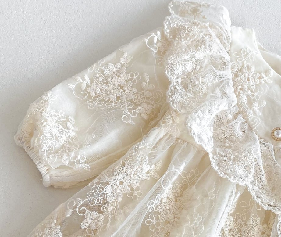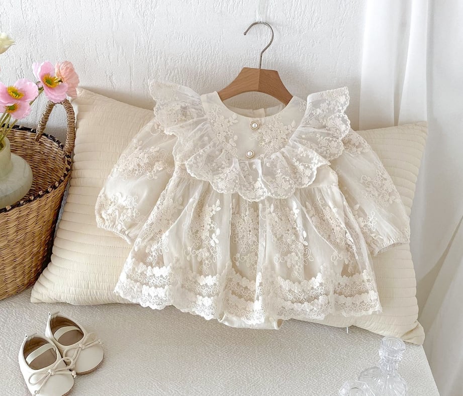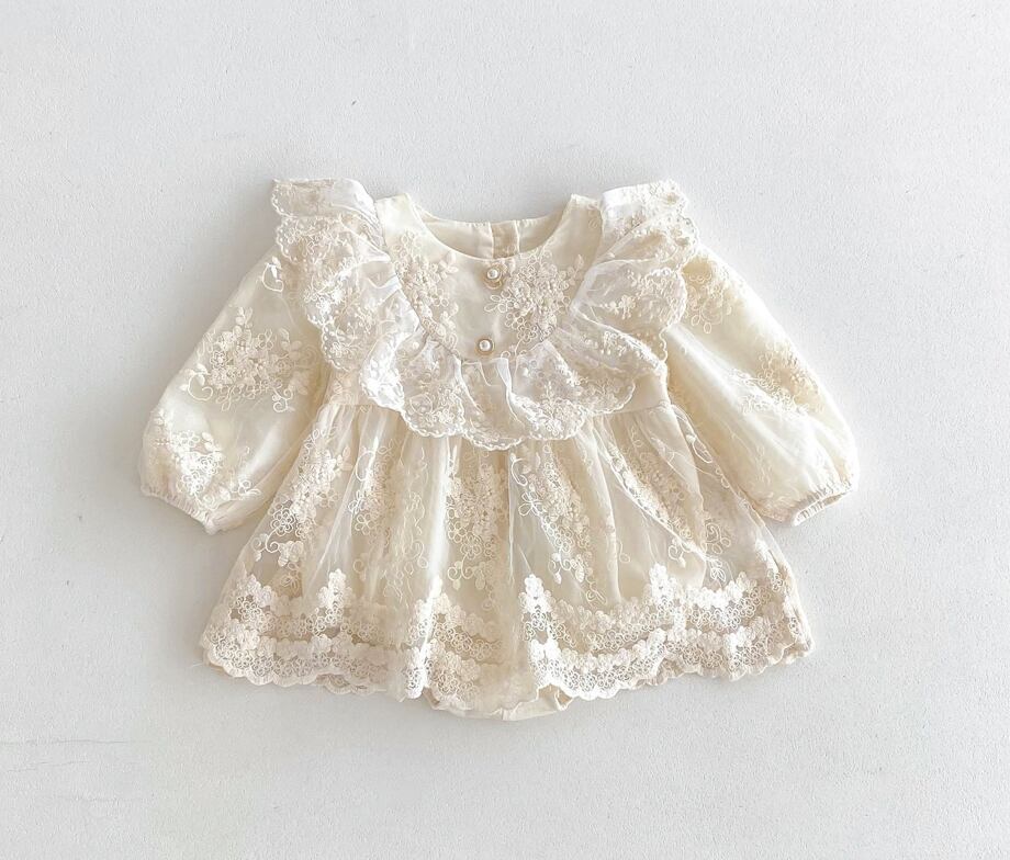 【即納】【66-90】French lace long sleeves dress rompers. pp