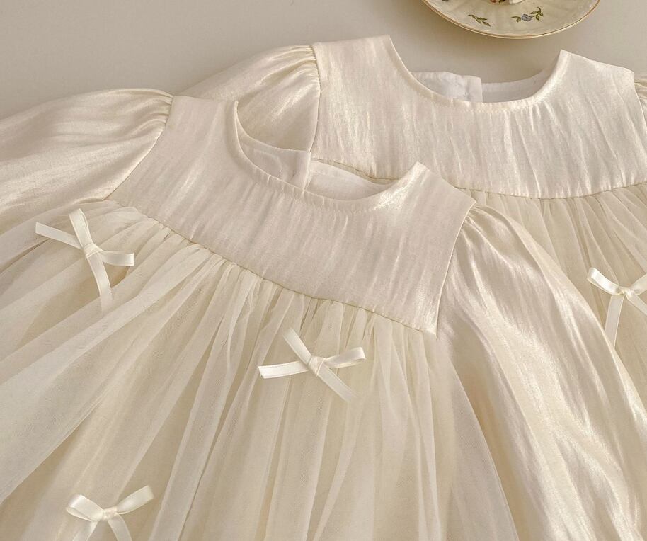2026 春新作 女の子長袖ワンピース リボンプリンセスチュチュスカート