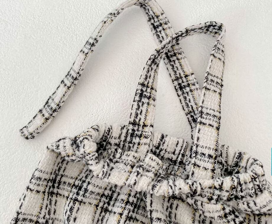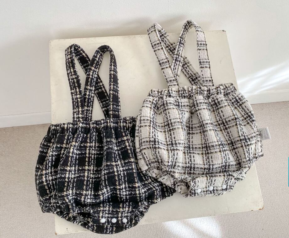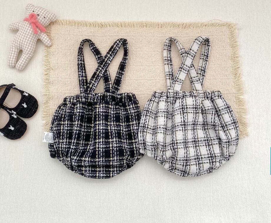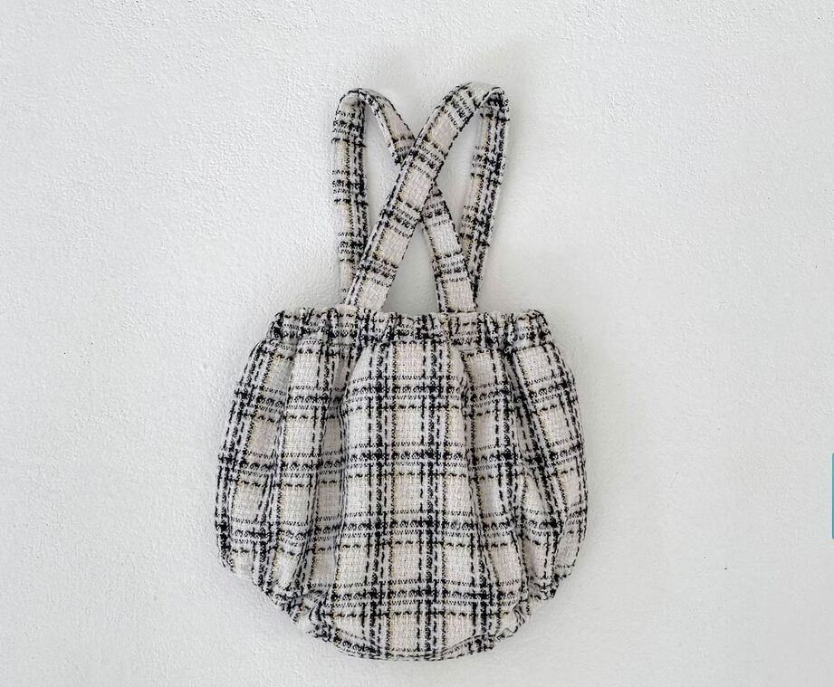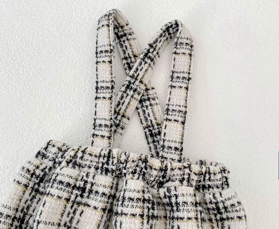 おしゃれでかわいいツィードチェックのサスペンダーブルマ♡