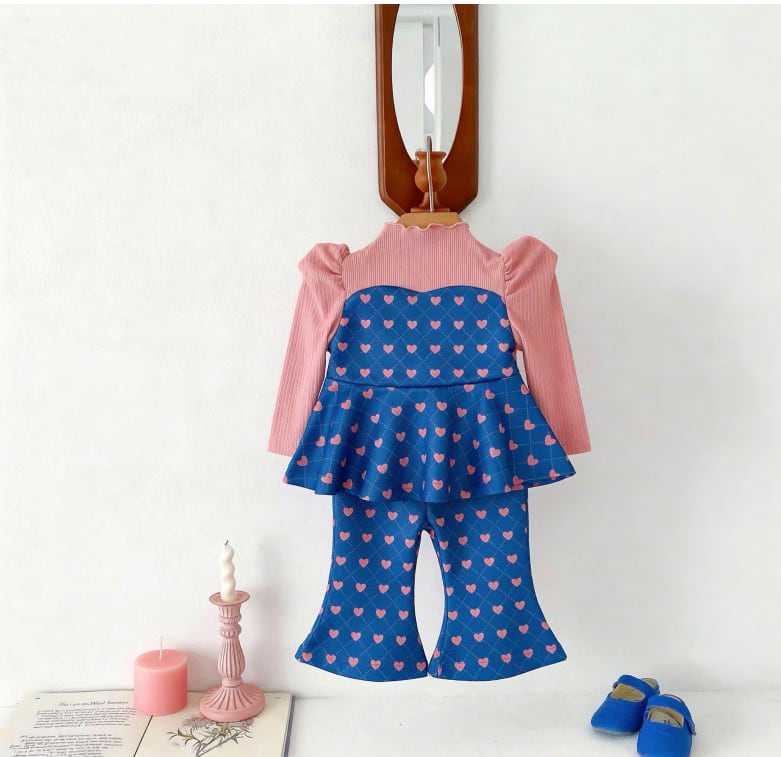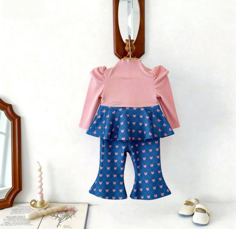 ハートプリント パフスリーブ 韓国風 2点セット 子供服