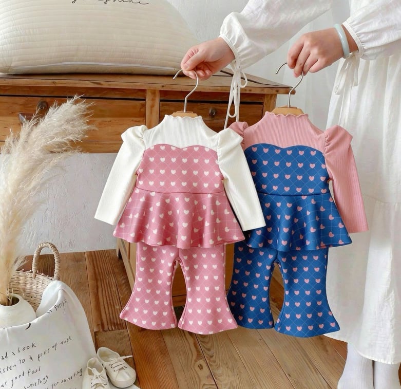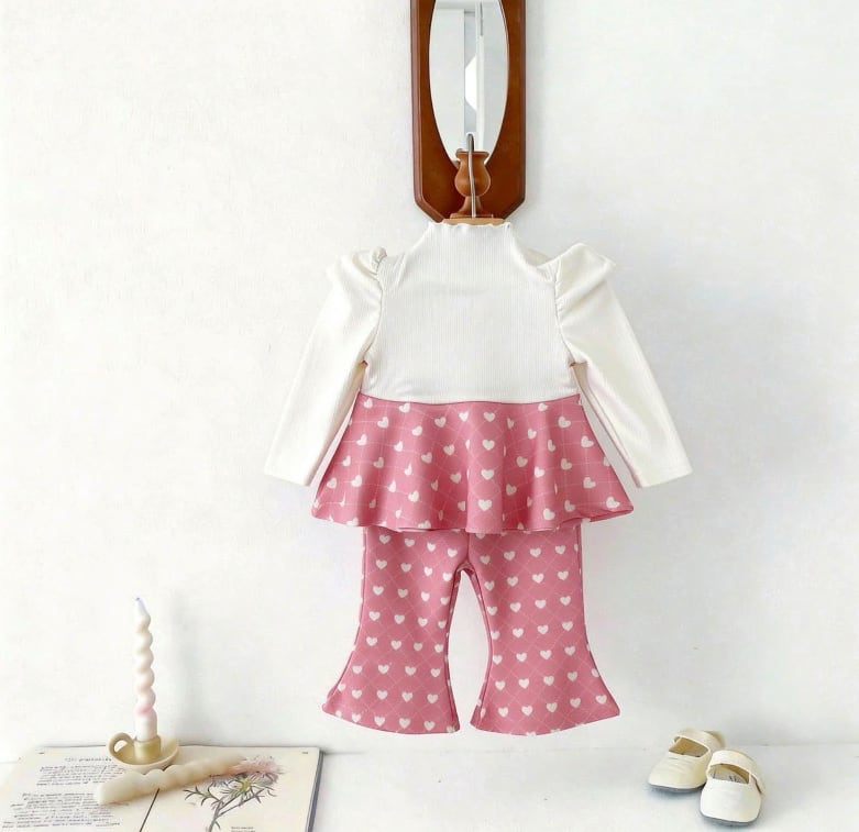 ハート柄とフリルアクセントが魅力的なセットアップです♡